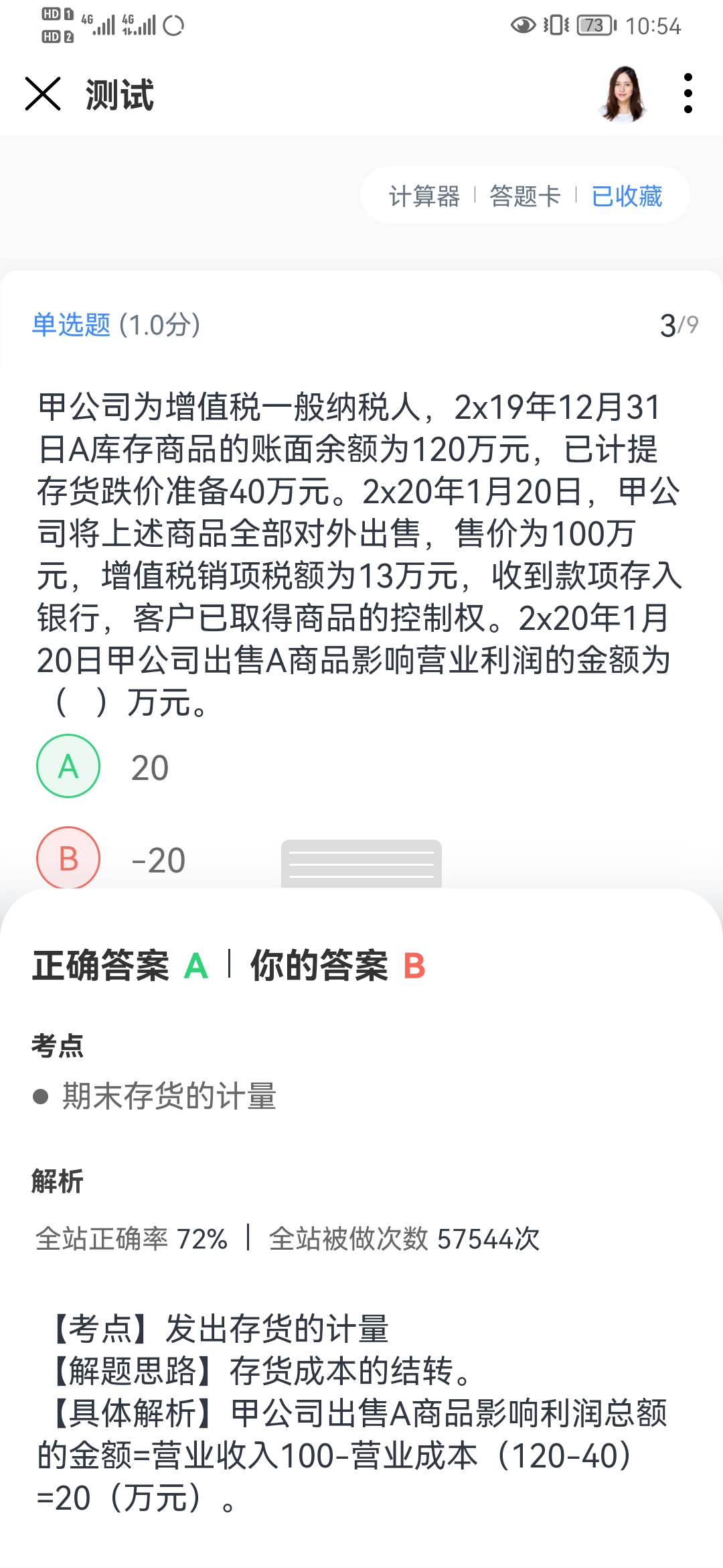 这个题主要考察的是在出售商品时 前期计提的存货跌价准备需要进行结转,冲减主营业务成本。