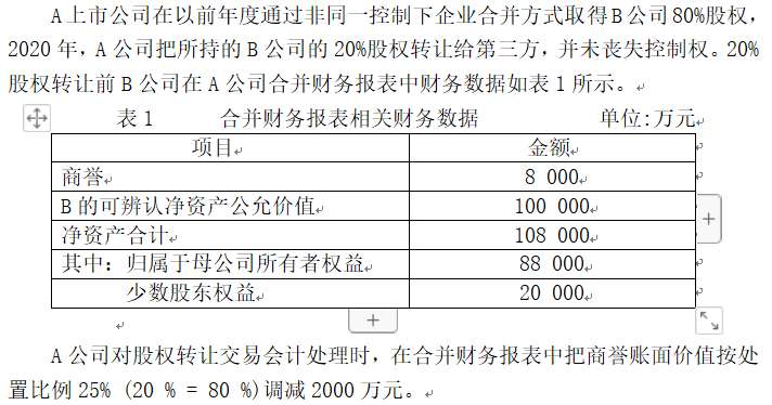 当处置子公司的股权,并不丧失控制权时,按比例把归属于母公司的所有者权益(包含子公司净资产和商誉)的账面价值调整至少数股东权益;