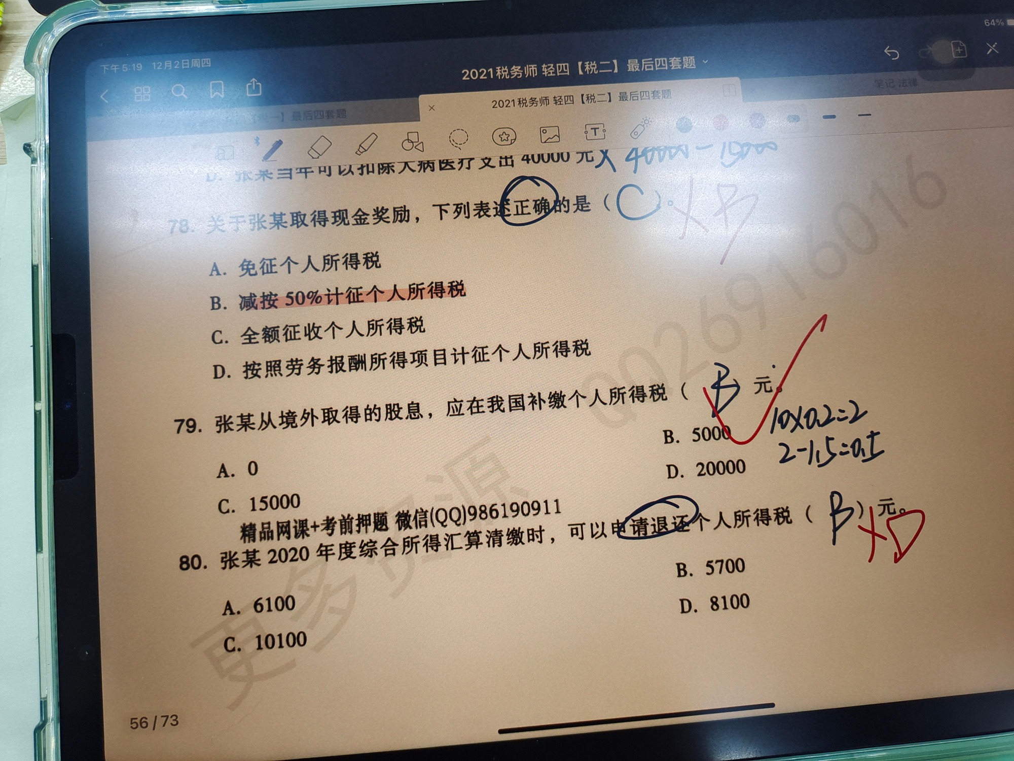 第80题问的是计算综合所得需退还的个税。铁路债券属于利息、股息、红利所得,不在综合所得中哟~