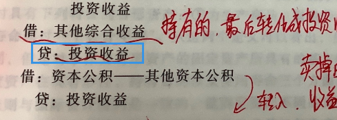 同学看下这个完善后的分录,也就是说“损益调整”那个项目,它在有变动的时候就是计入“投资收益”的,而其他科目并没有,所以在处置的时候,应该是结转另外两个,而不用结转“损益调整”那个了~