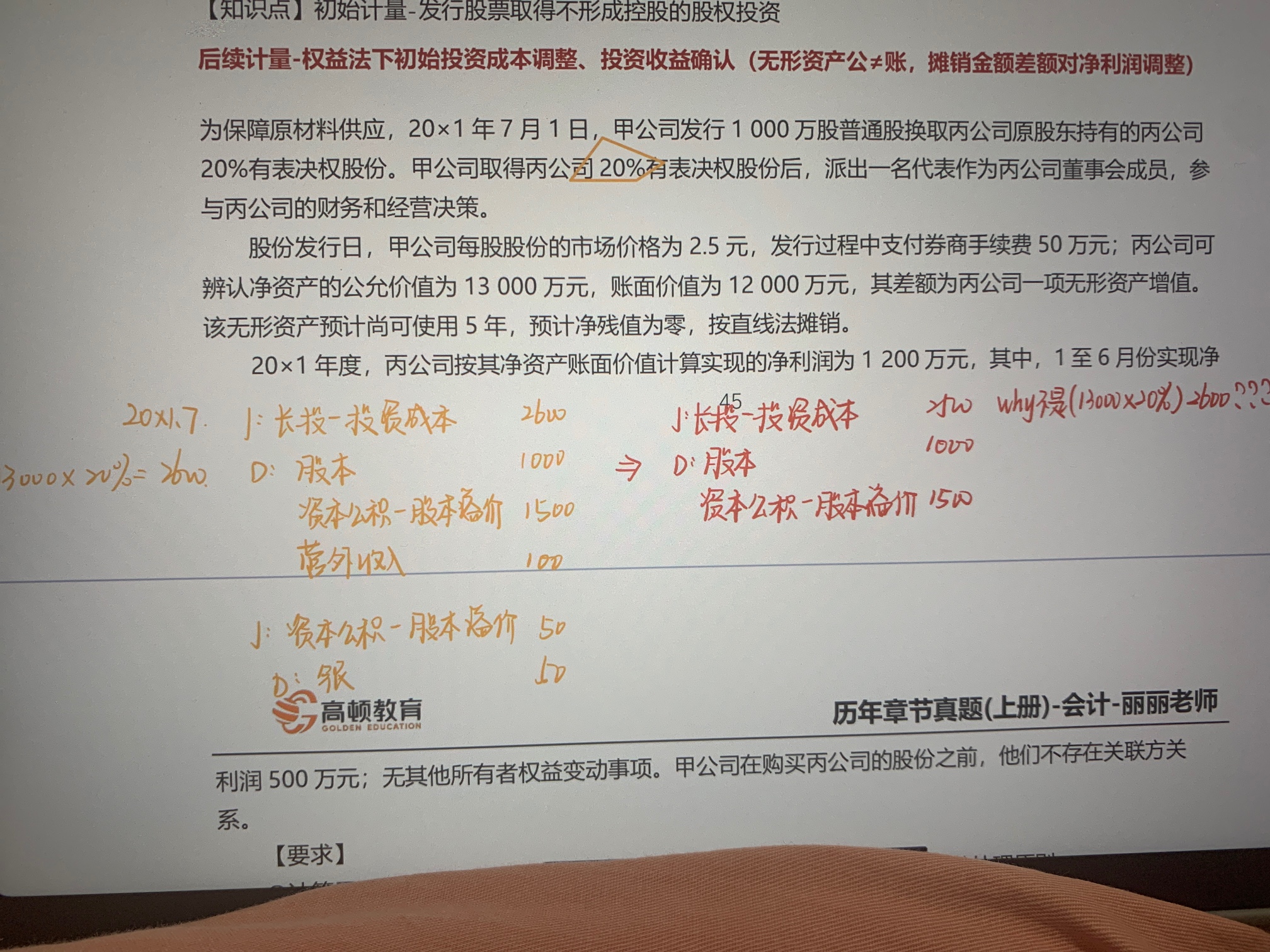 所以我99%把握,题目分了几个步骤问的,先问初始投资成本,那么是2500没错的。然后问长投入账价值,那是经过比较后,选择较大值2600。