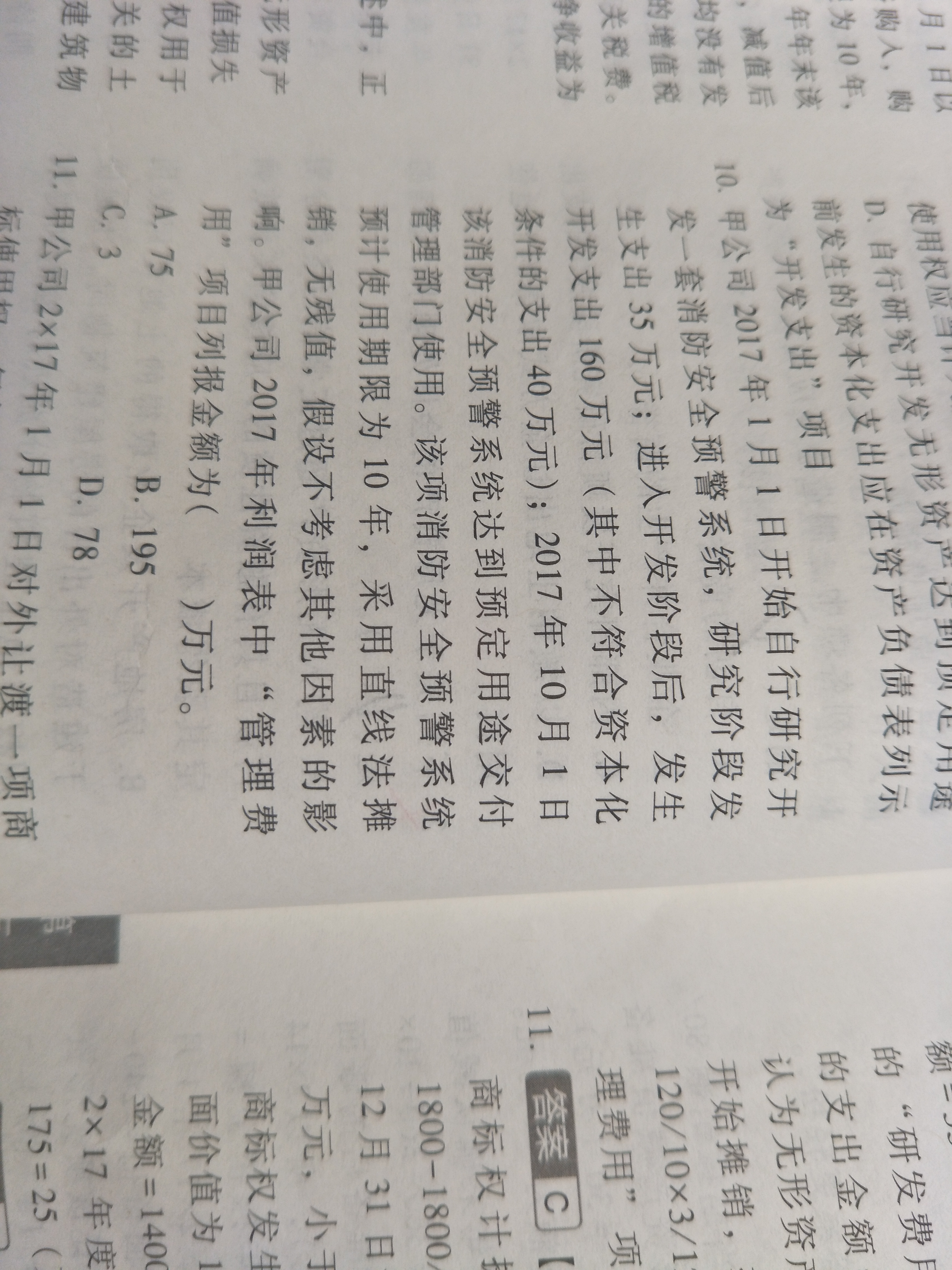 是的,应该是D,C只算了折旧部分,还有研发的费用化部分没有算。