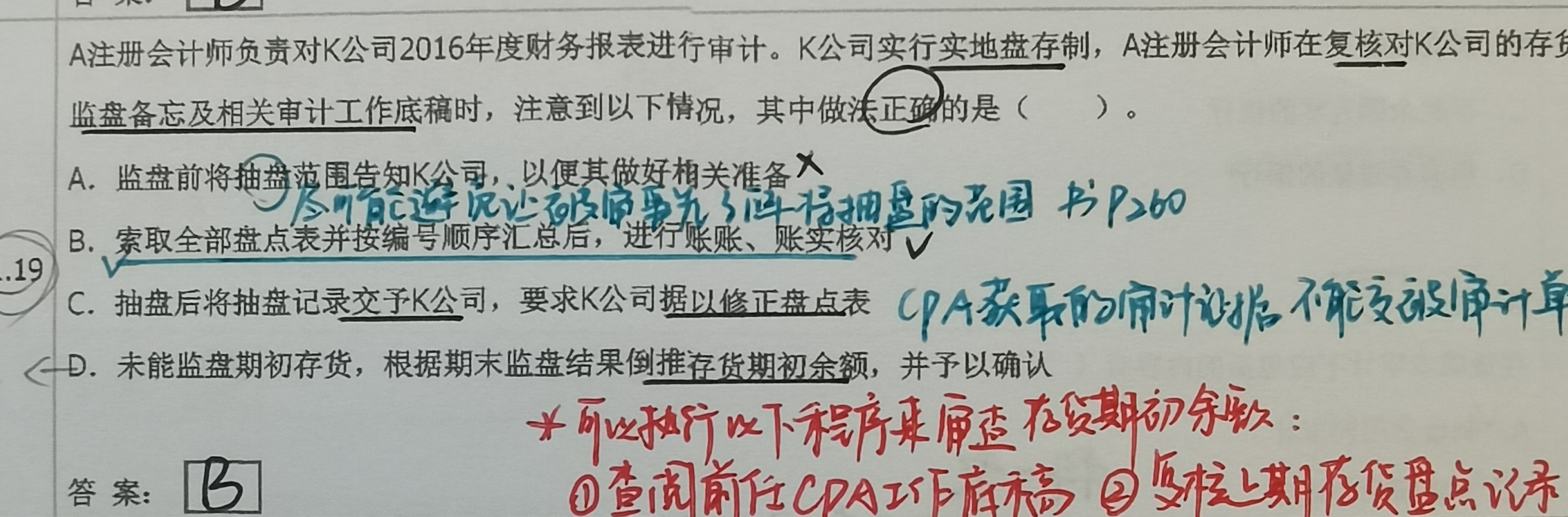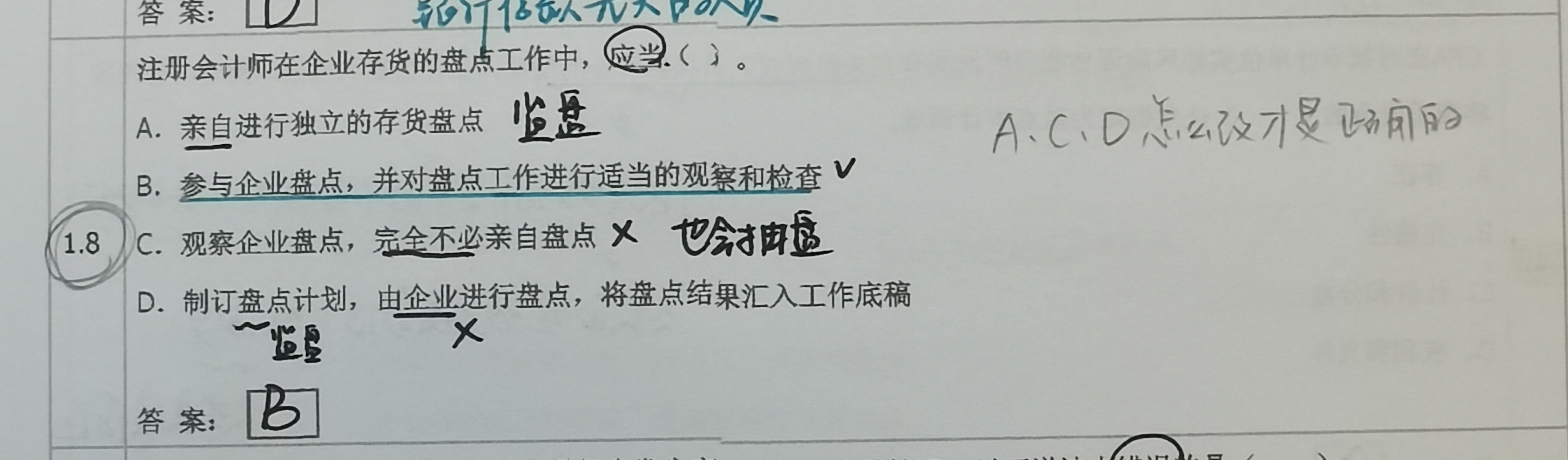 第8题同学自己的写法是可以的,注册会计师的责任是监盘而不是盘点,监盘过程中会亲自抽盘。