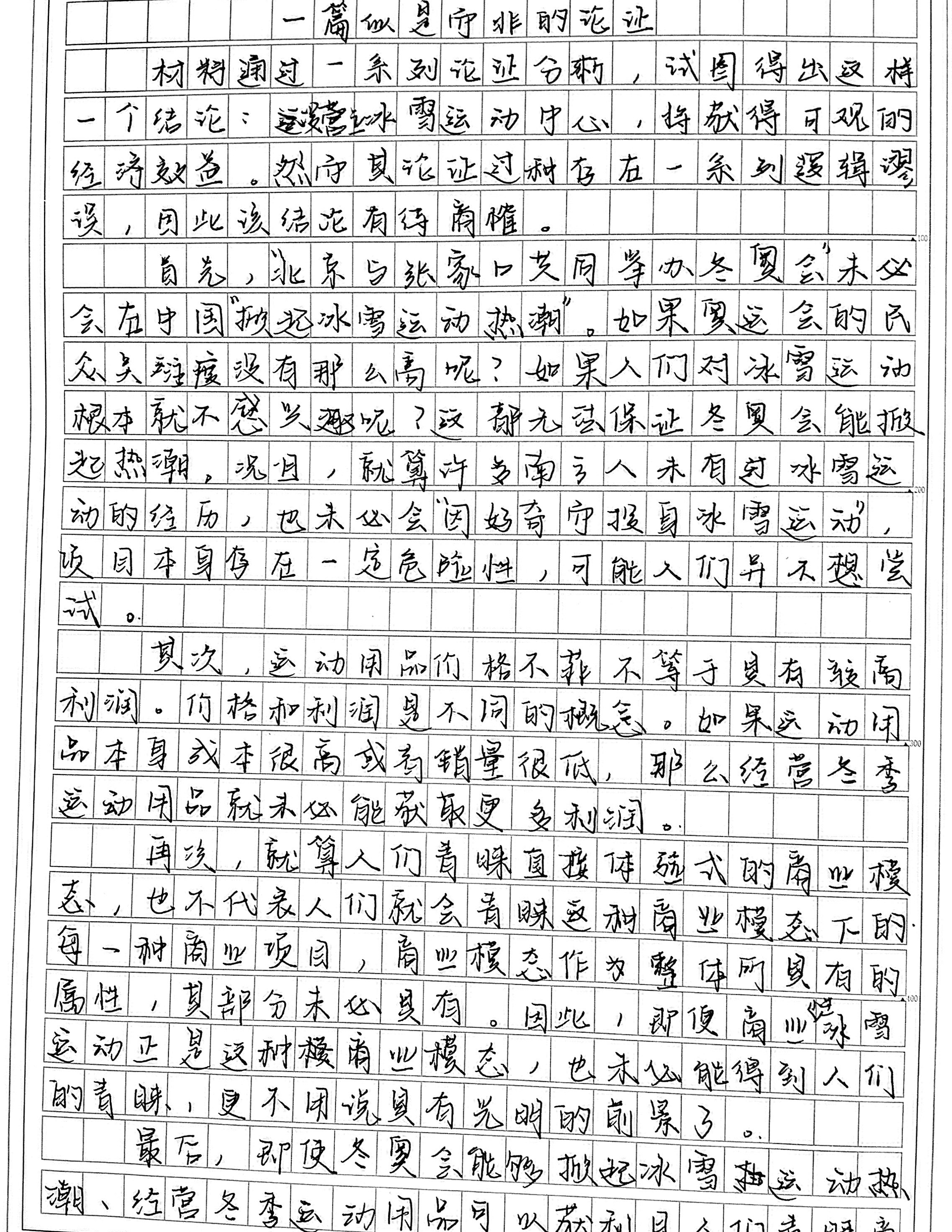2.分析段第二段,分析的点是对的,但是这一段只写了四行,篇幅有点少,所以可以针对成本或者销量分析一下。如果成本也很高,那么利润就有限。如果消费者因价格不菲而选择租赁或者在别处购买,运动中心就未必获得“更多利润”。每段最好六行左右。