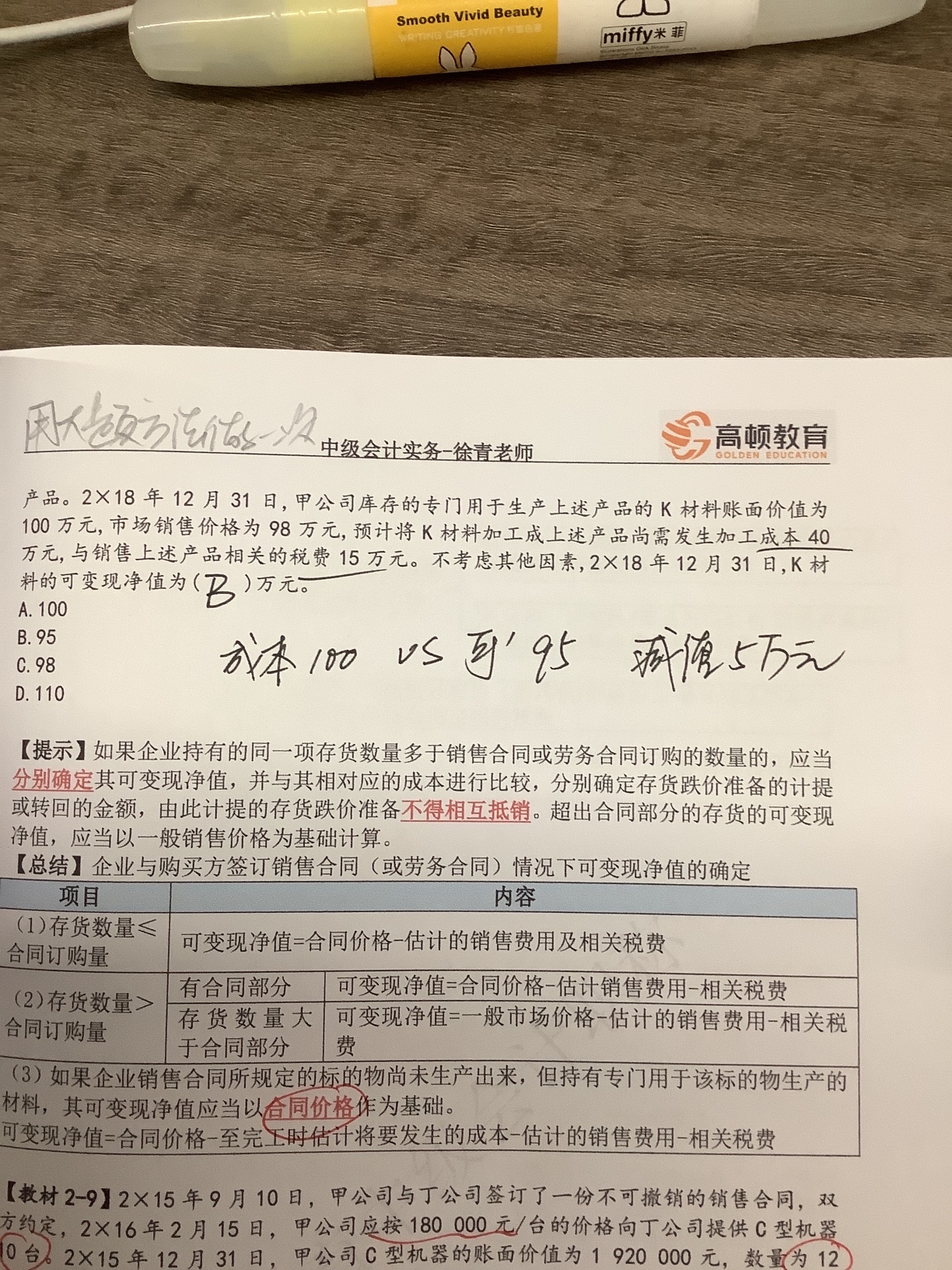 那50万为什么不是计入该产品的可变现净值里面 公式里面都有一...