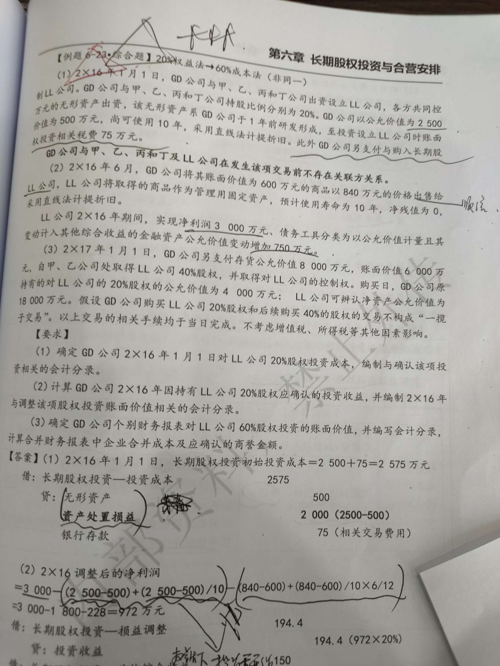 资料三中非货币性资产给到了甲、乙(从甲乙手中取得股权),应该按照多步到位实现非同一控制企业合并处理哈~