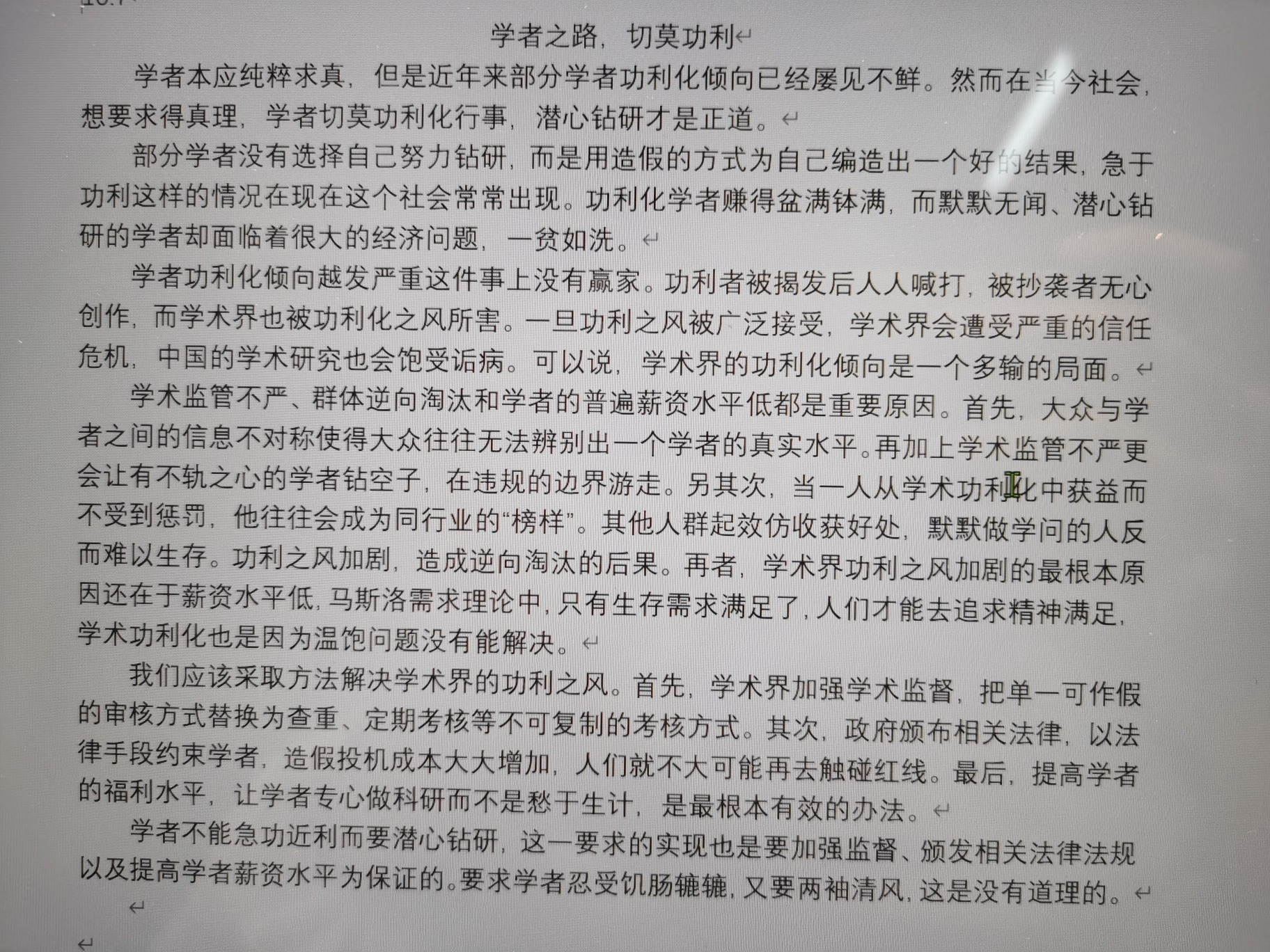 老师,这是10年的论说文,请您帮我看一下,到考场能拿多少分呢?拜托老师指正我的作文问题