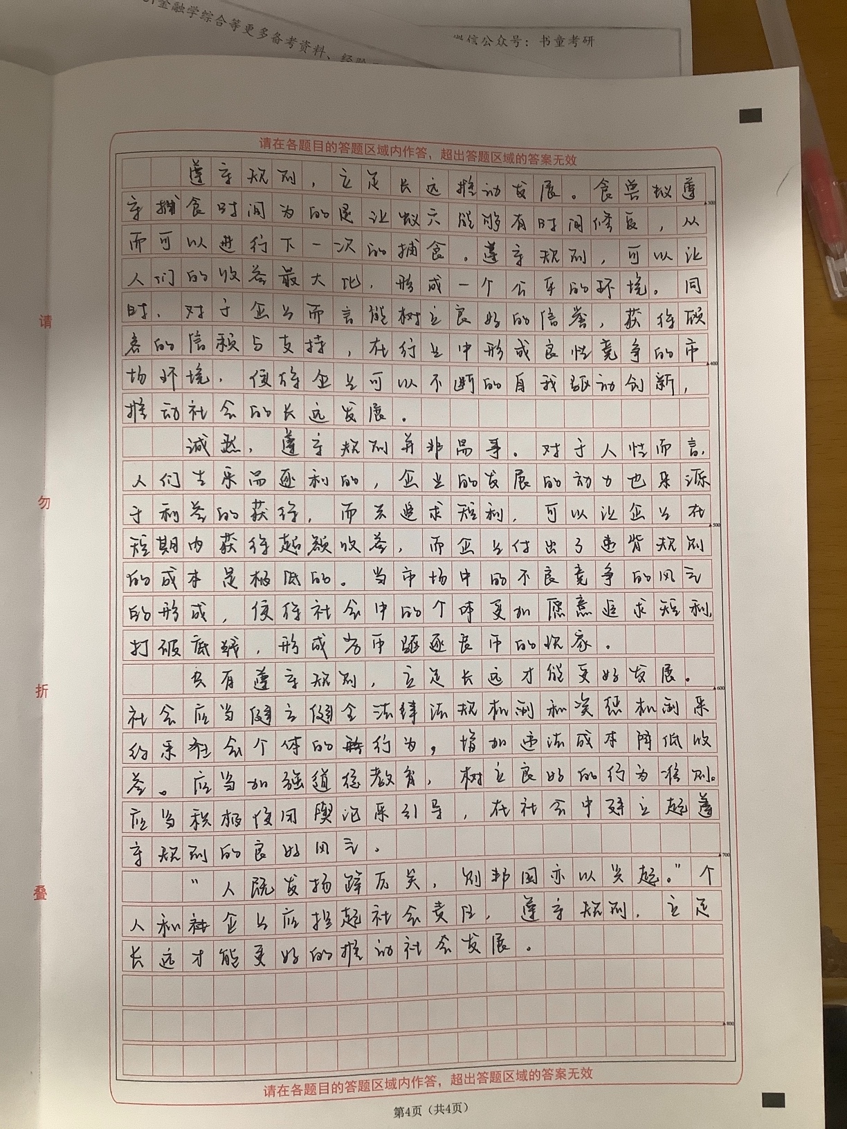 遵守规则是怎么审出来的?题干的立意应该是“可持续发展”,你写立足长远也可以,但是遵守规则有点偏哦