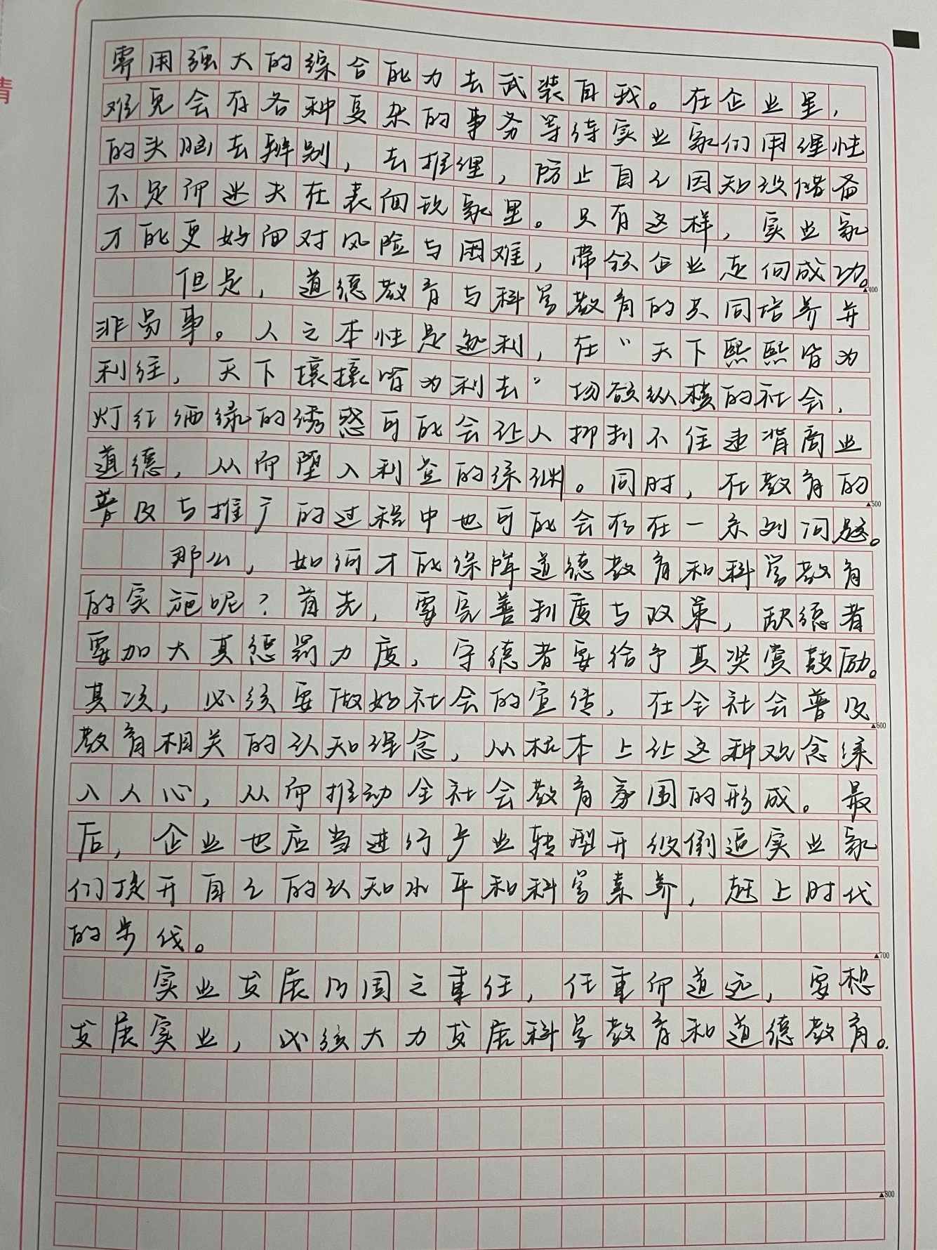 你写的很好,考场上可以评为二类卷上甚至是一类卷了,这篇文章过关了,总体立意准确,语句通顺,中心明确,论证深刻,结构完整,是一篇佳作。继续保持!放稳心态,早点休息,祝你一战成硕!26/35