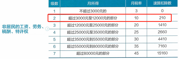 非居民个人的工劳特高适用月度税率表时,是四个项目合计数适用,...