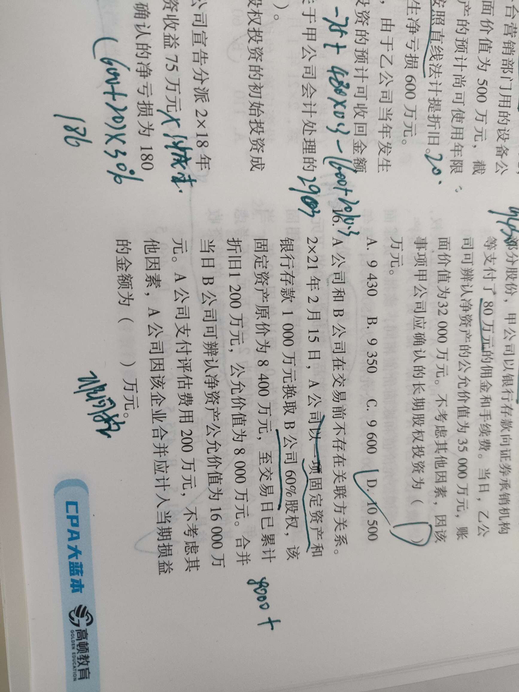 蓝本198页17题,不考虑预计至开发完成仍需800万支出,是...