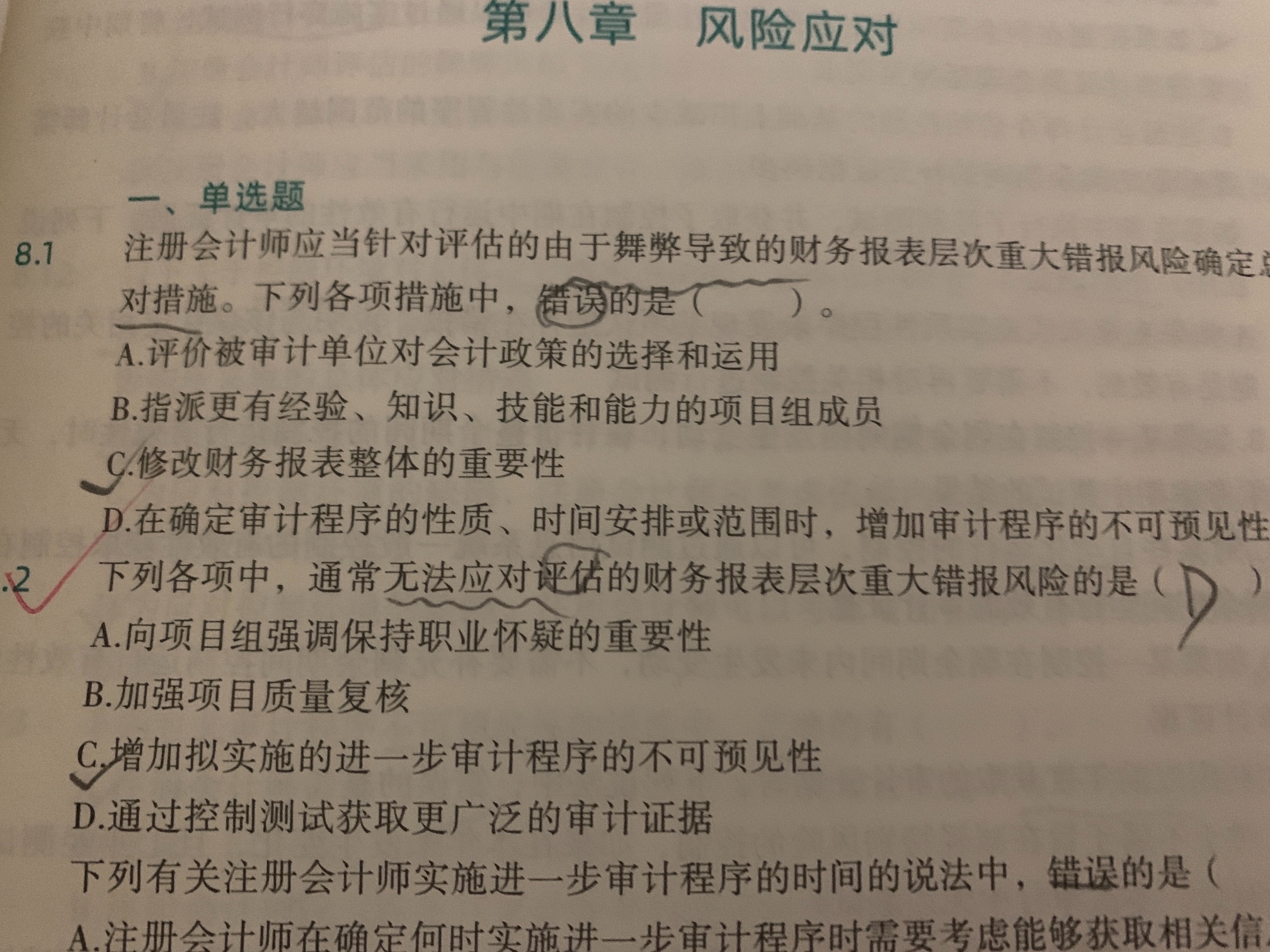 老师审计押题密卷第88页第4题第4问不应该增加与持续经营相关...