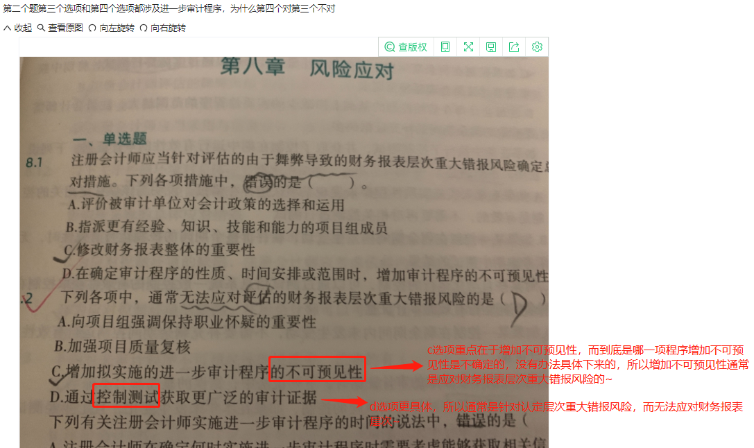 第二个题第三个选项和第四个选项都涉及进一步审计程序,为什么第四个对第三个不对