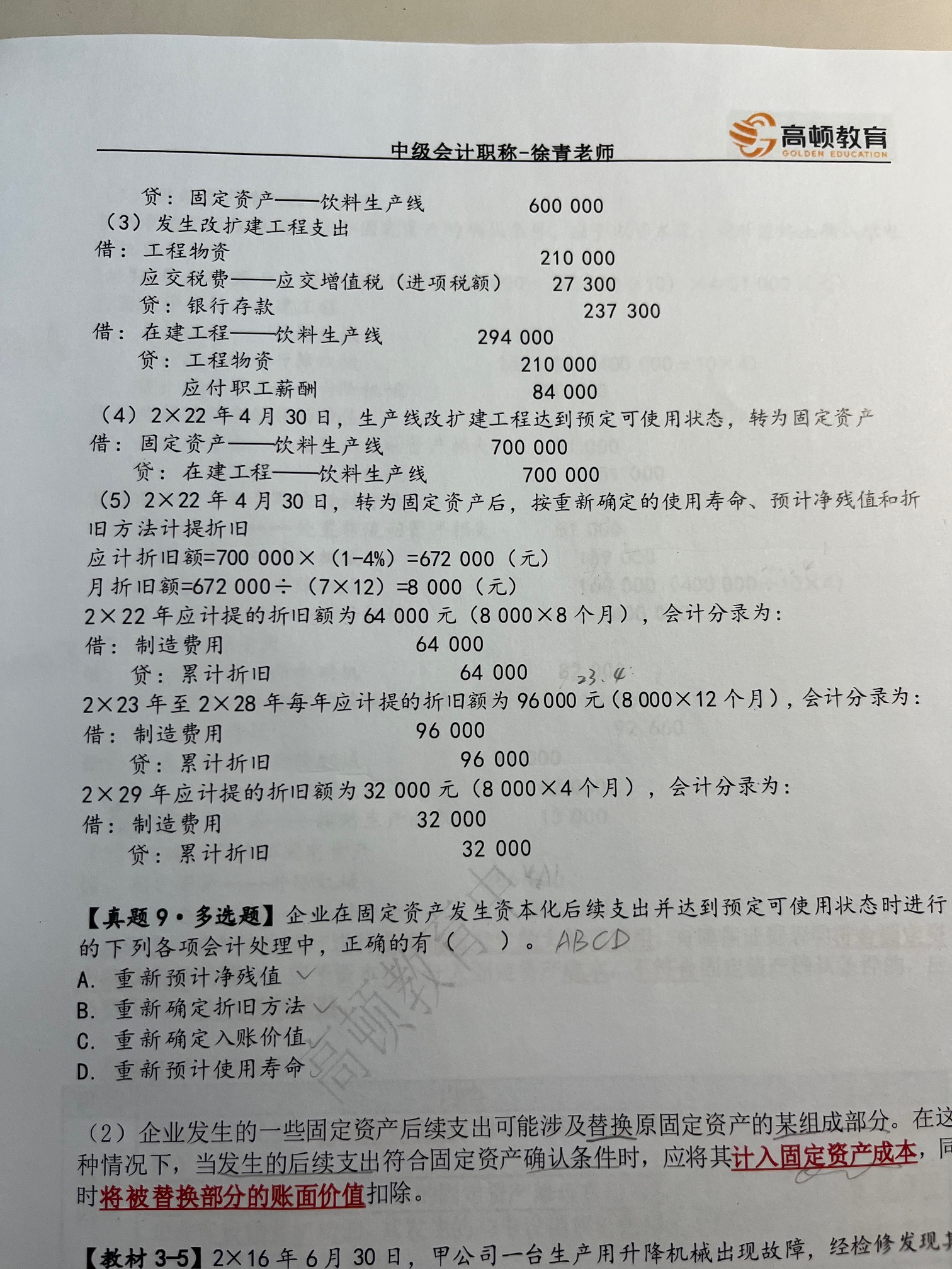 (2)确定开始折旧日和结束折旧日。本题是从22年5月1日开始计提折旧,折旧期是7年,折旧结束期是29年4年30日