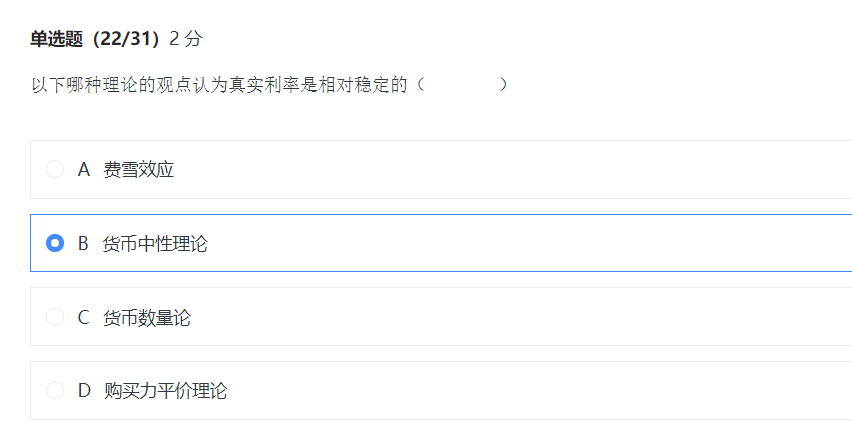 这题是这样?弗里德曼不是只假设货币需求是利率的稳定函数?只是对利率不敏感而已啊,这题不应该选a吗,费雪假设长期实际利率不变,名义利率跟随通货膨胀一对一调整