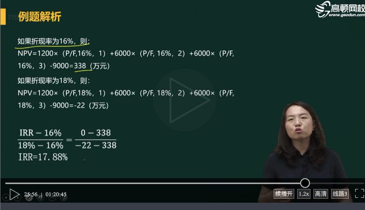请问在求项目内含报酬率时,试误法折现率采用16%和18%的依...