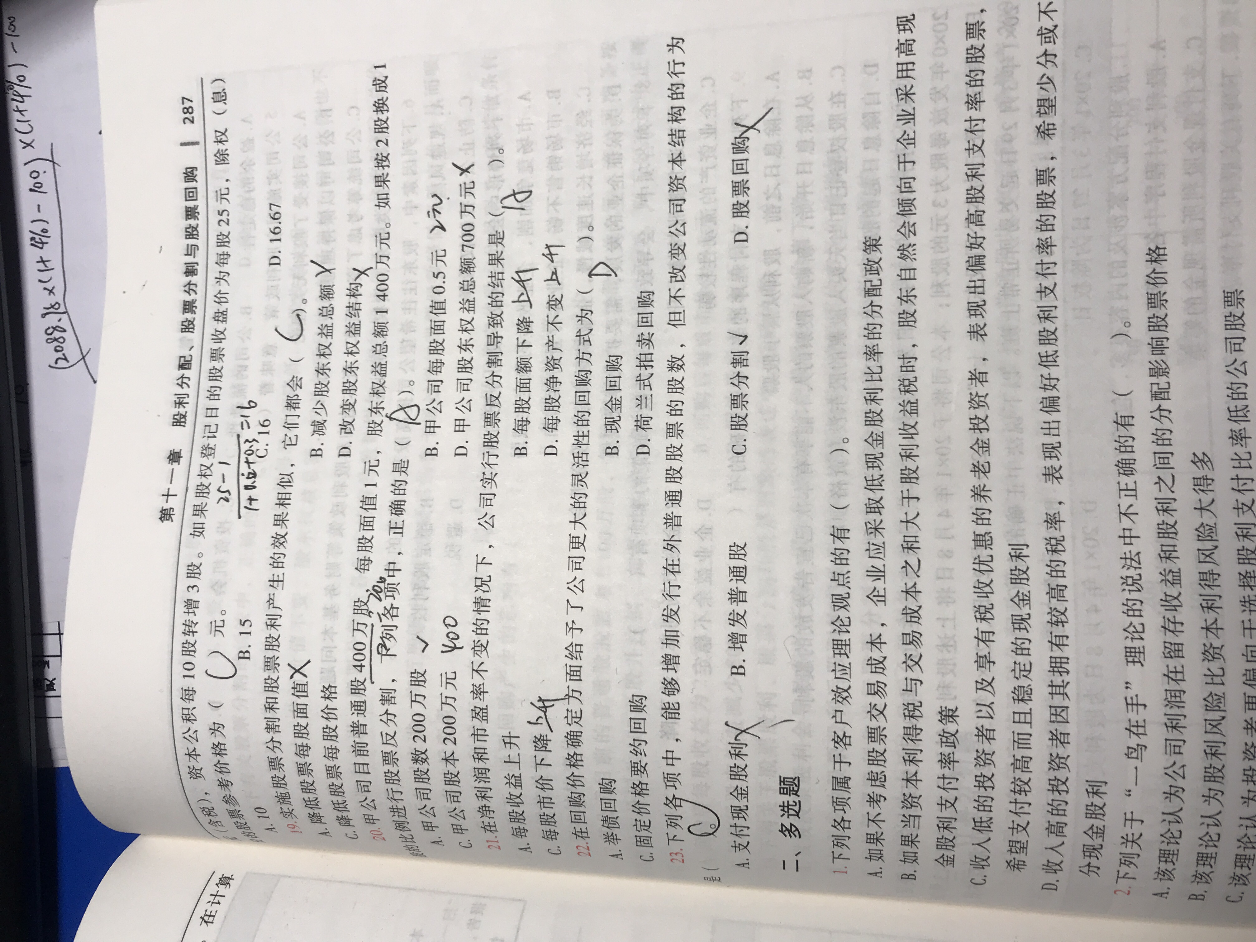 17题选D,股权登记日的股价是包含这次拟发放的股利的