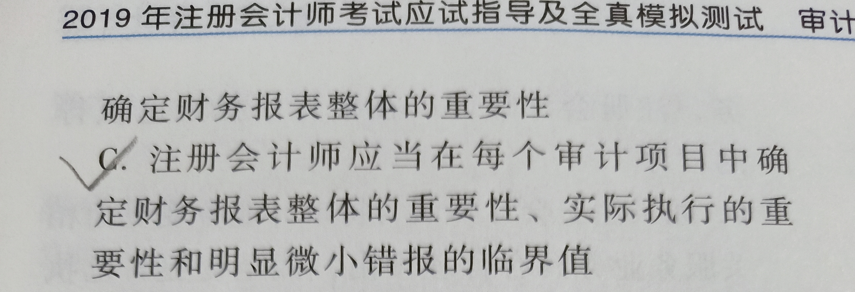 老师你好。 这里不是说认定层次重要性水平和明显微小错报临界值是可有吗,为什么这里的C 说应当还对了呢