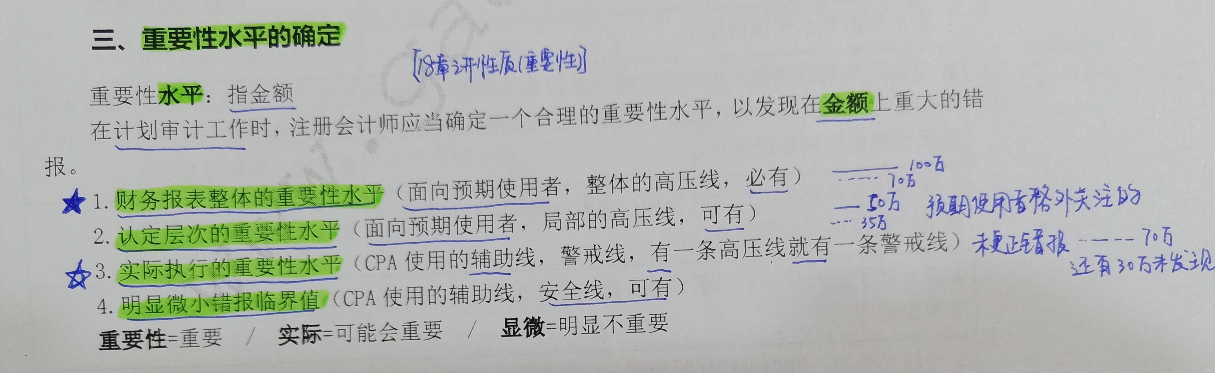 这个需要考虑几个因素来确认,那么第一张图说的可以,意思是明显微小错报临界值可以设定大于0的值,如有没有那就是为0,也就是所有发现的错报都要累积。