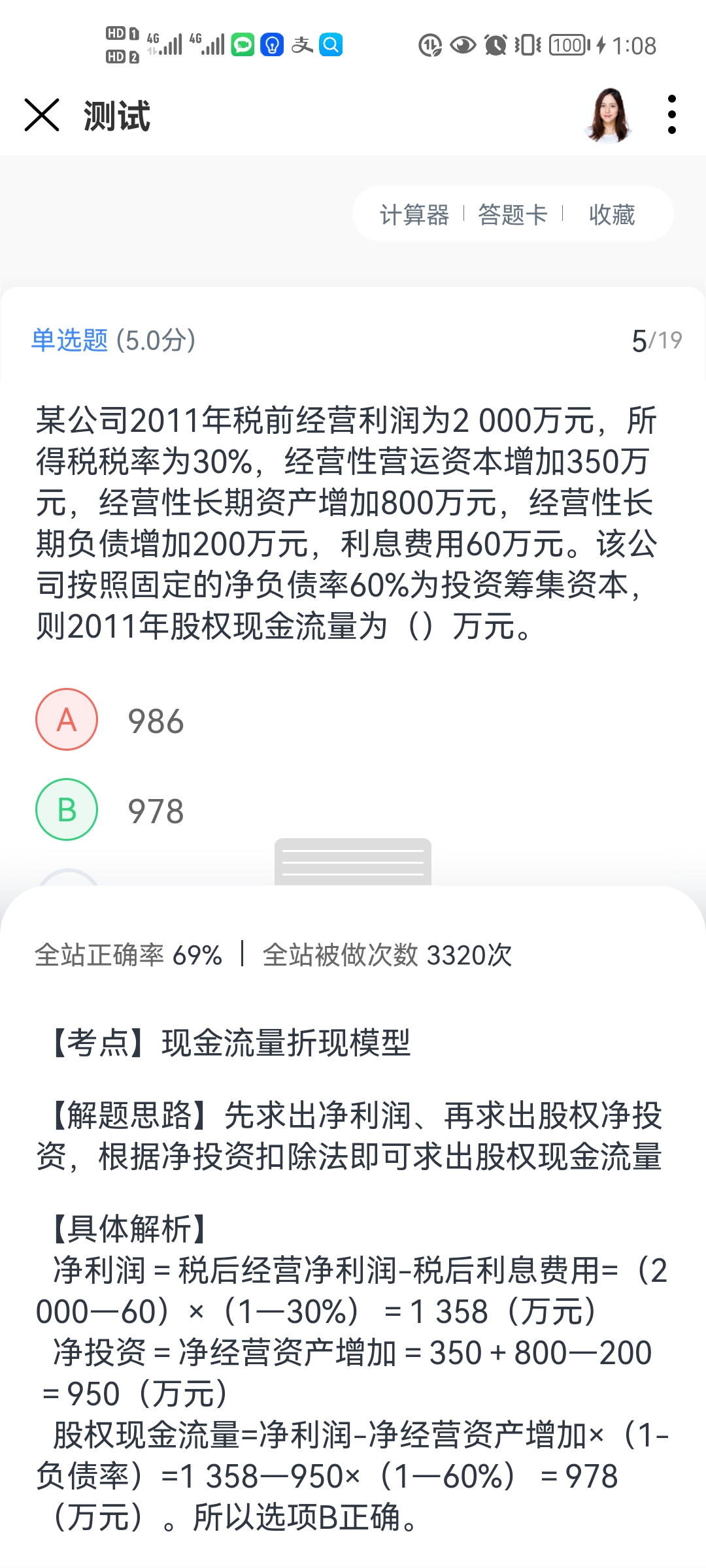 实体现金流=税后经营净利润-净经营资产的增加