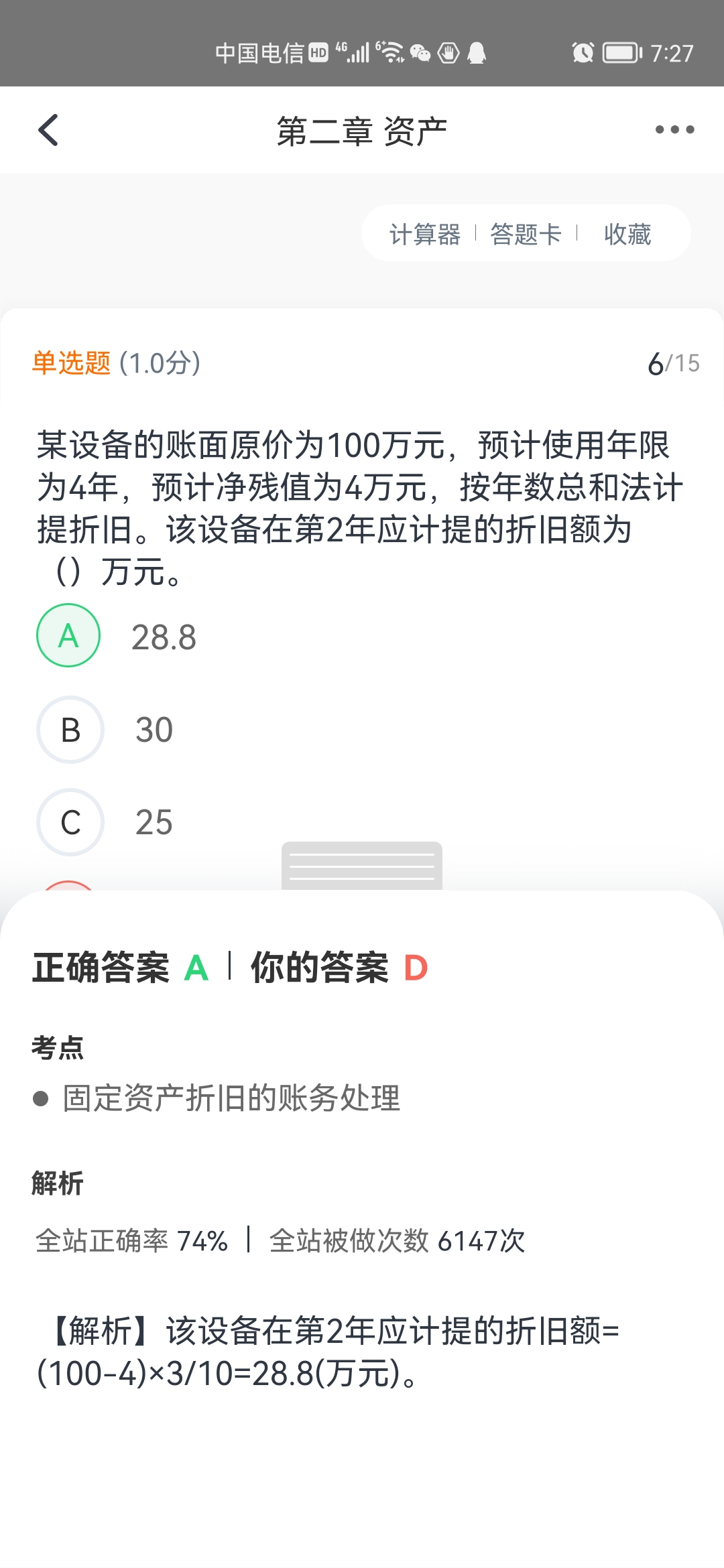 已知题目告诉我们的是预计使用4年,求第二年的折旧,那么第一年的折旧=4/(1+2+3+4)*100%=4/10*100%