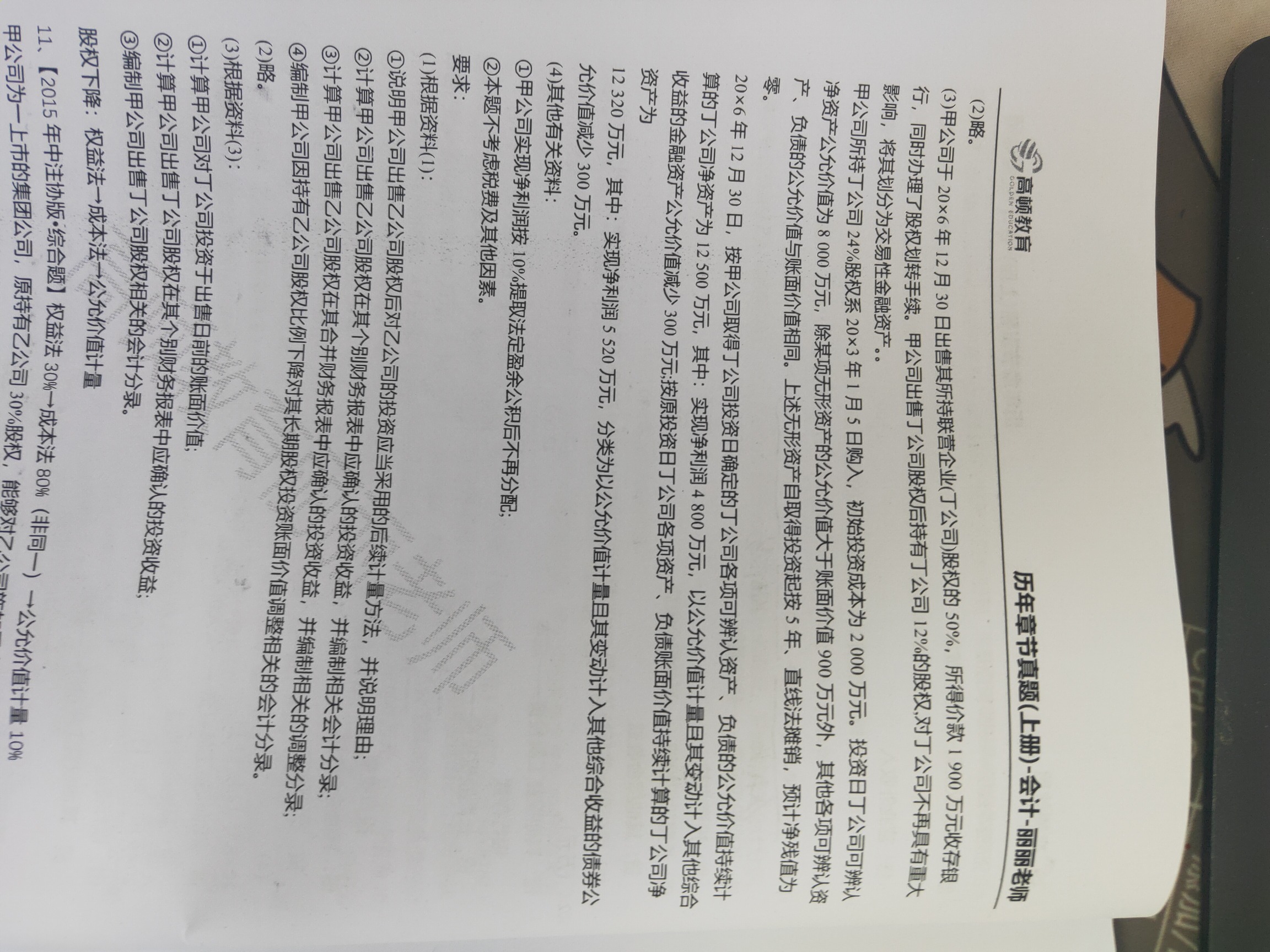 老师,标注阴影的那一句话没有看懂。甲取得丙的股权是长投呀,他...