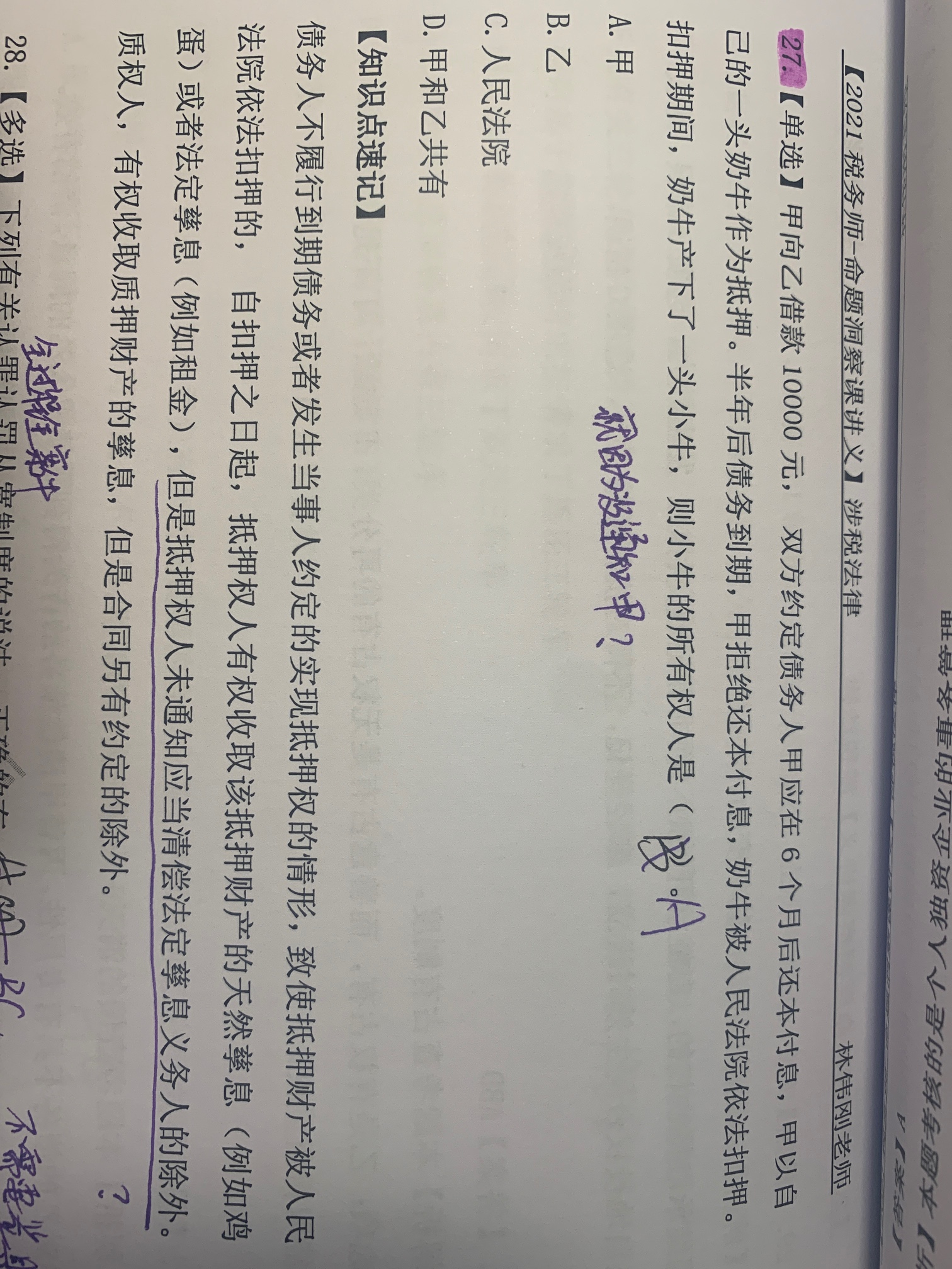 抵押权人乙不及时通知债务人,则抵押权的效力不及于该孳息,则该孳息小牛的所有权还是归属于借款人甲。