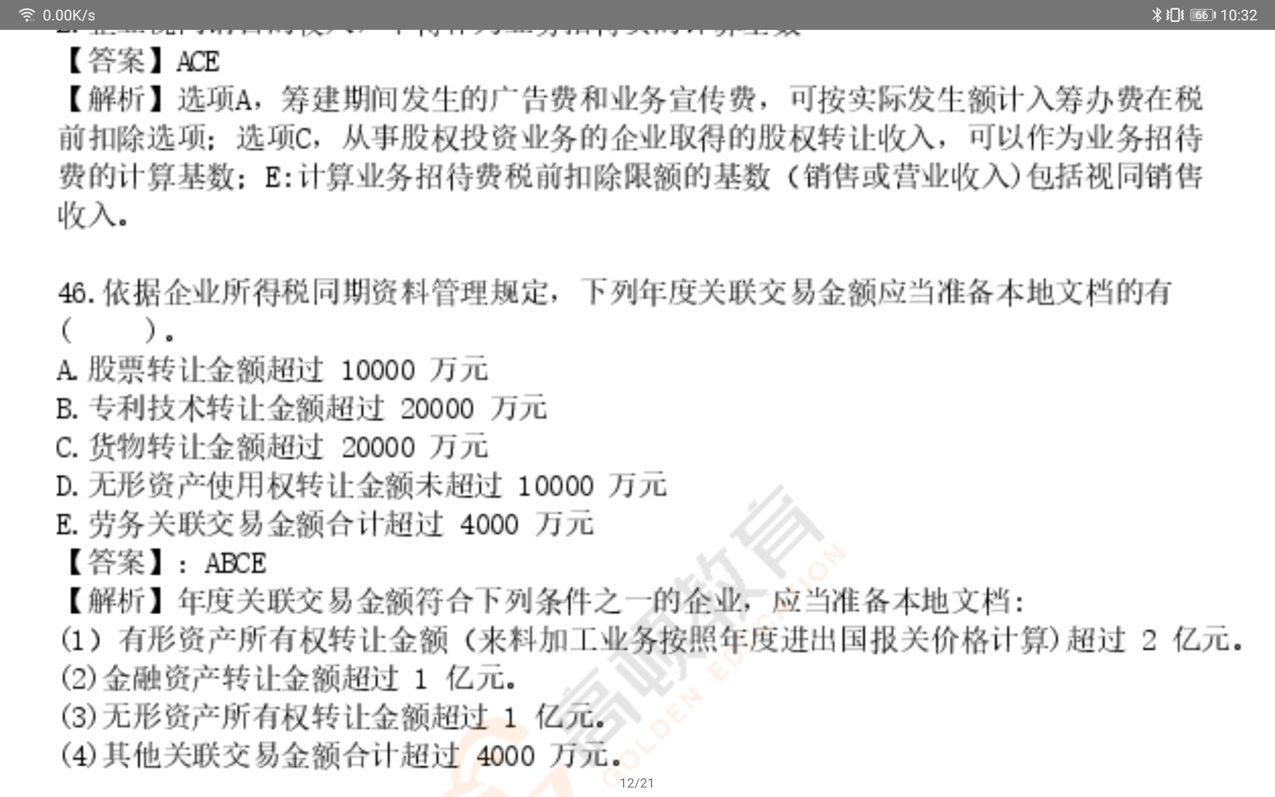 46题:专利技术转让的是技术,属于无形资产转让,无形资产所有权转让金额超过1万元,应准备本地文档。专利技术转让金额超过2万元,符合超过1万元的标准,所以选项B是正确的,46题答案是正确的呢~