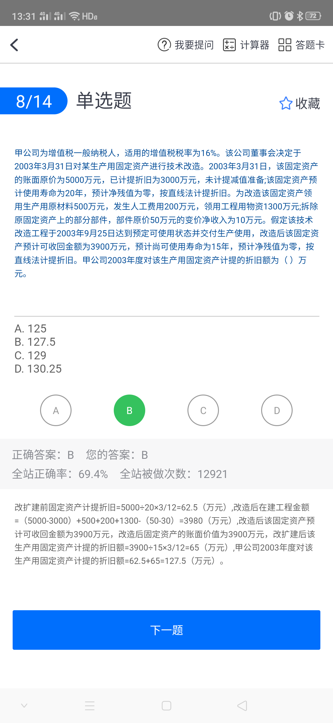 1、改造前计提的折旧是怎么来的?解析没看明白,题目没有说购买...