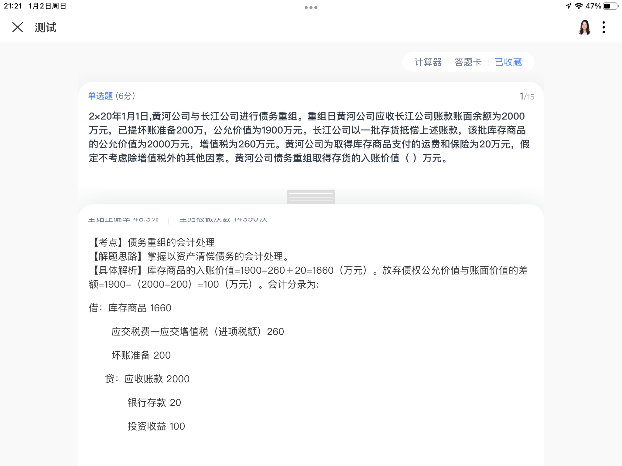 根据图一的解答在债权人角度以存货抵债不要考虑存货的增值税,但是在平时的习题里面(图二)有是要考虑增值税的,应该以哪个为准呢?还是这里面有什么细节我没注意到。另外,请问一下老师,在债务人角度看存货抵债是否要考虑增值税销项税呢?即债务人的其他收益金额为账面的应付-账面存货-销项税
