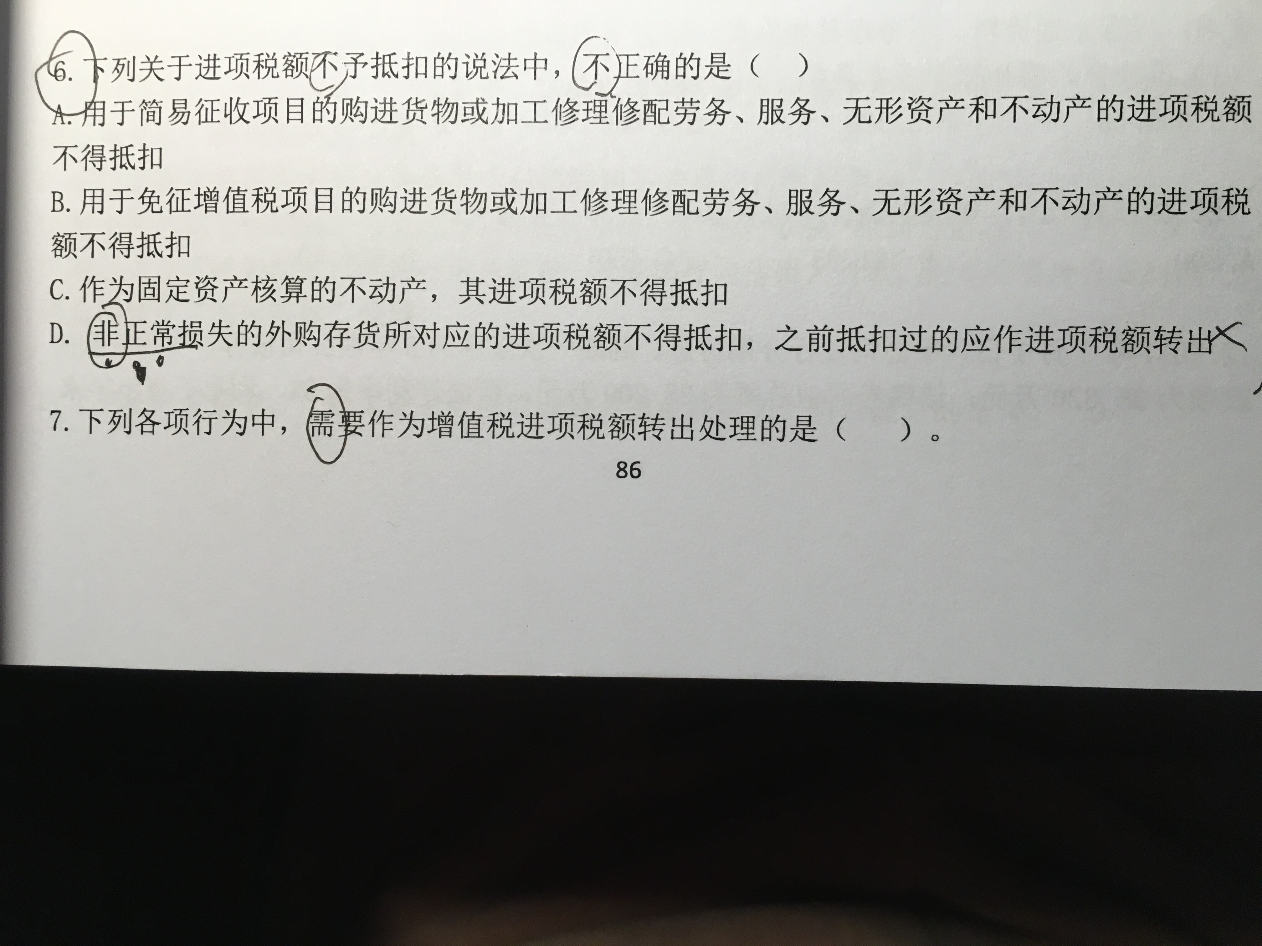 非正常是包括很多的,除了自然灾害这一种情况外,其他都不能抵扣的,所以D没有问题,