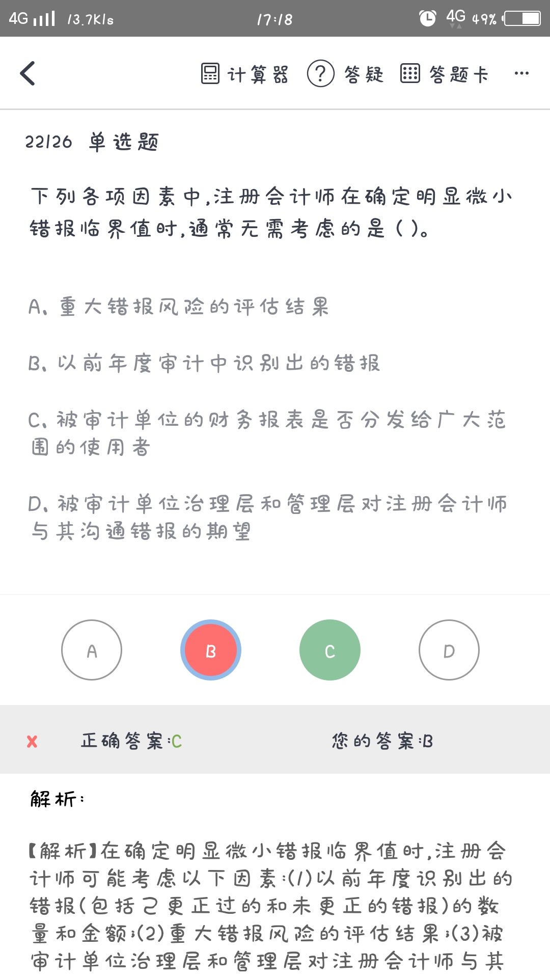 审计中对明显微小错报临界值的确定,注册会计是有要考虑的因素~但是不含这一条哦~