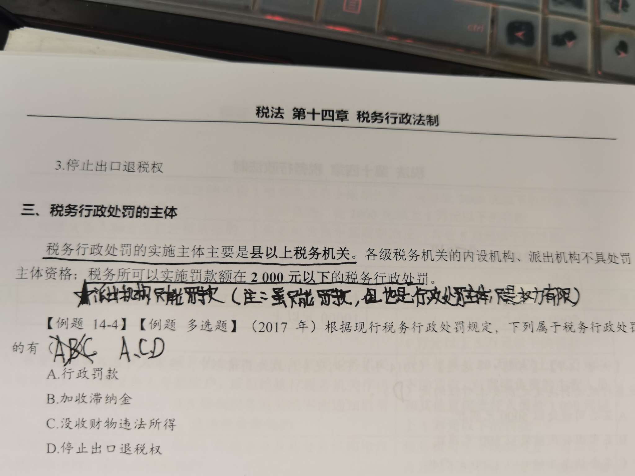 (2)c选项的主要考察点在于:税务行政处罚的实施主体:主要是县以上税务机关。C说省以下没有所以不正确,但是解析中可能说法比较绝对