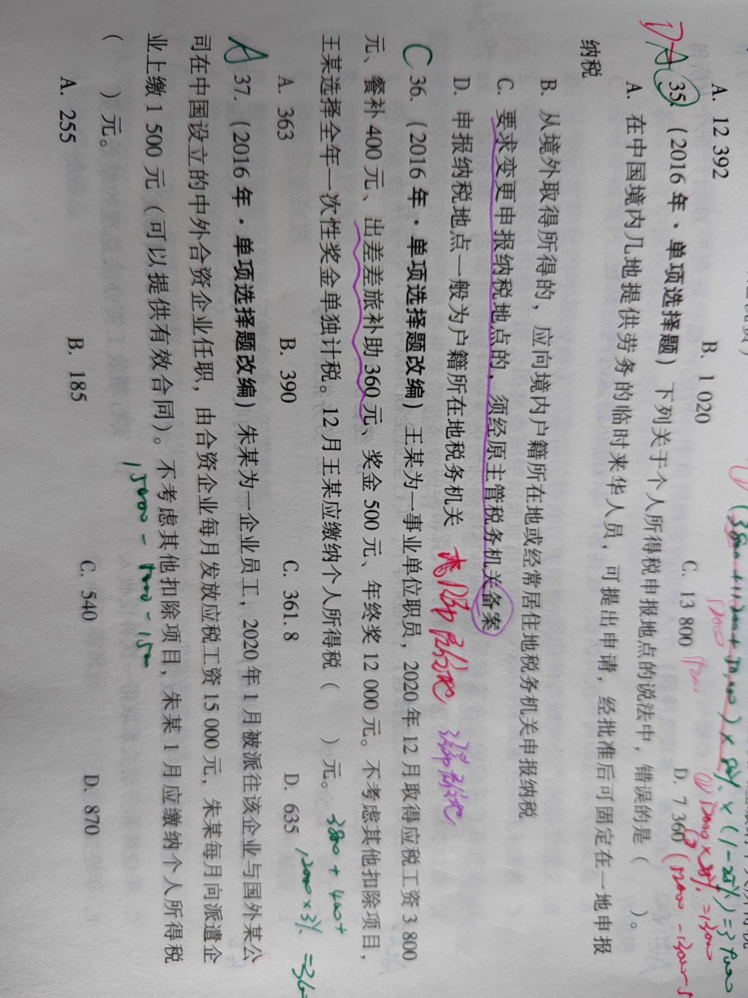 从答案上看,是加了360,但是这360是不需要交个税的。这个是哪里的题?