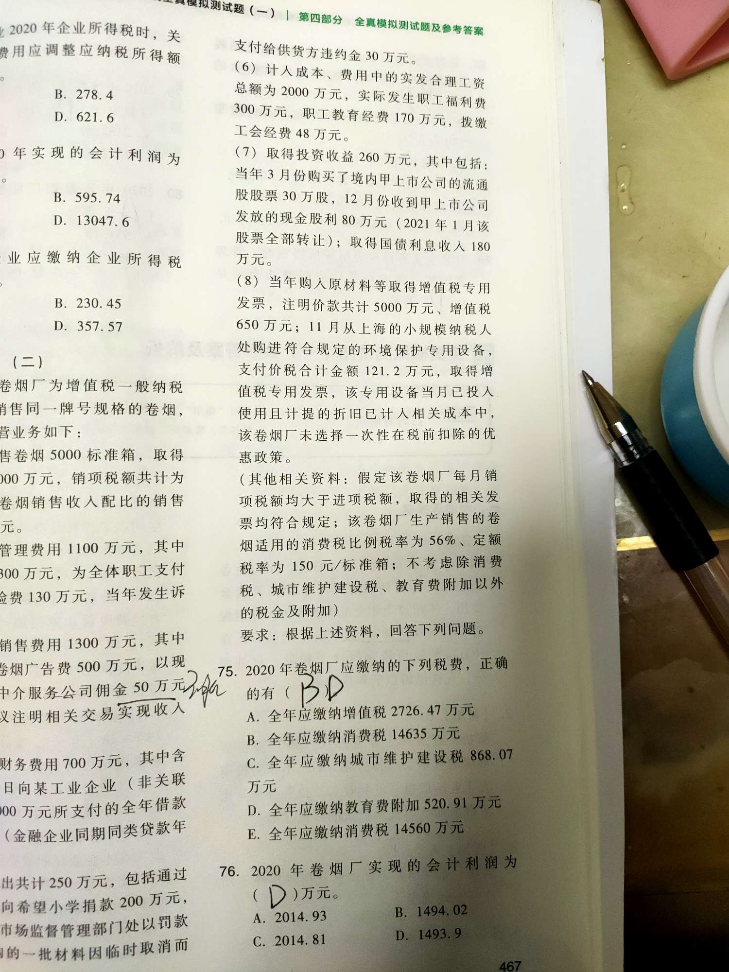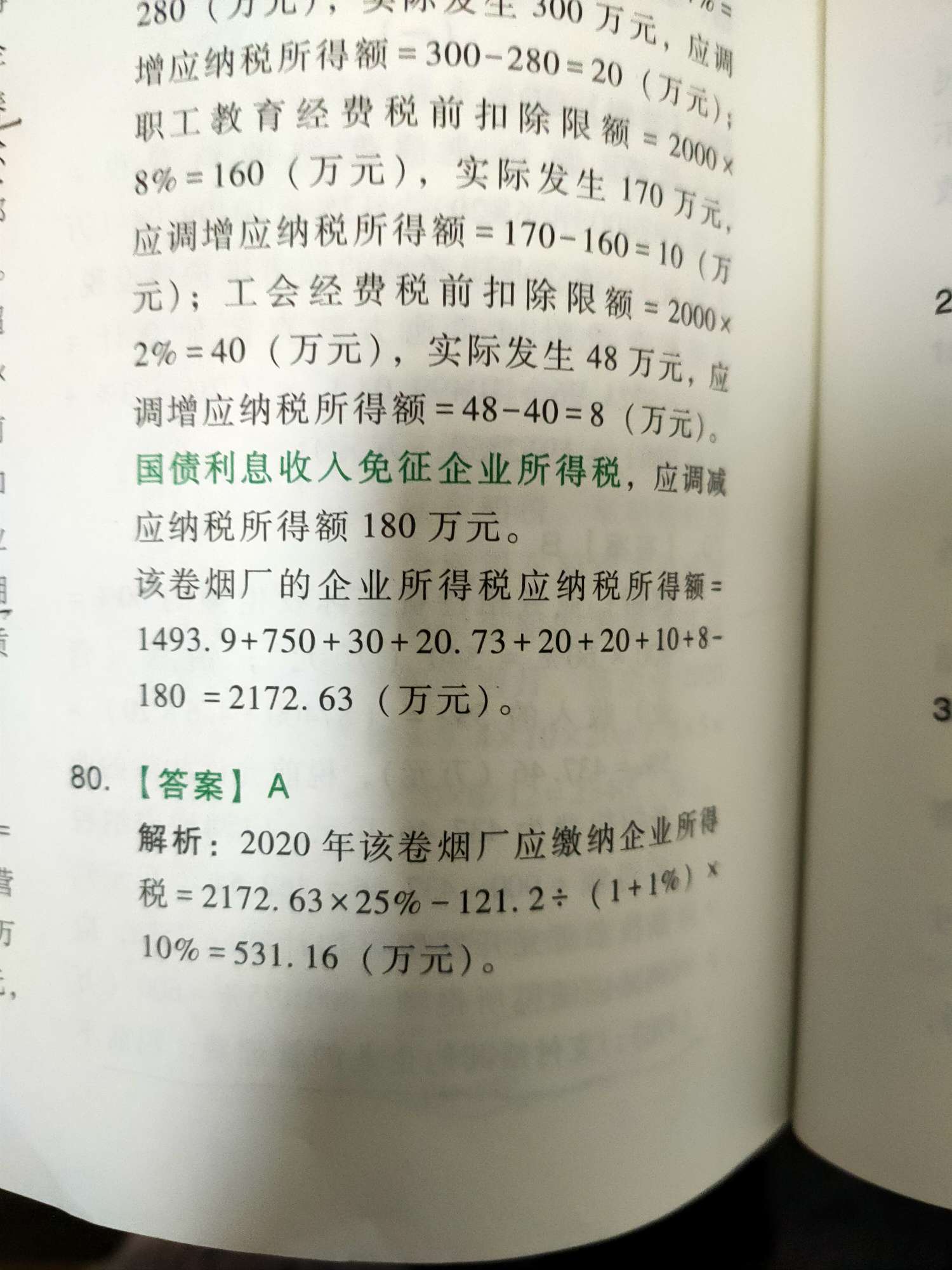 朱同学75题的121.2/(1+1%)*1%计算的是增值税,80题的121.2/(1+1%)*10%计算的是购买符合条件的环境保护专用设备抵减企业所得税的10%