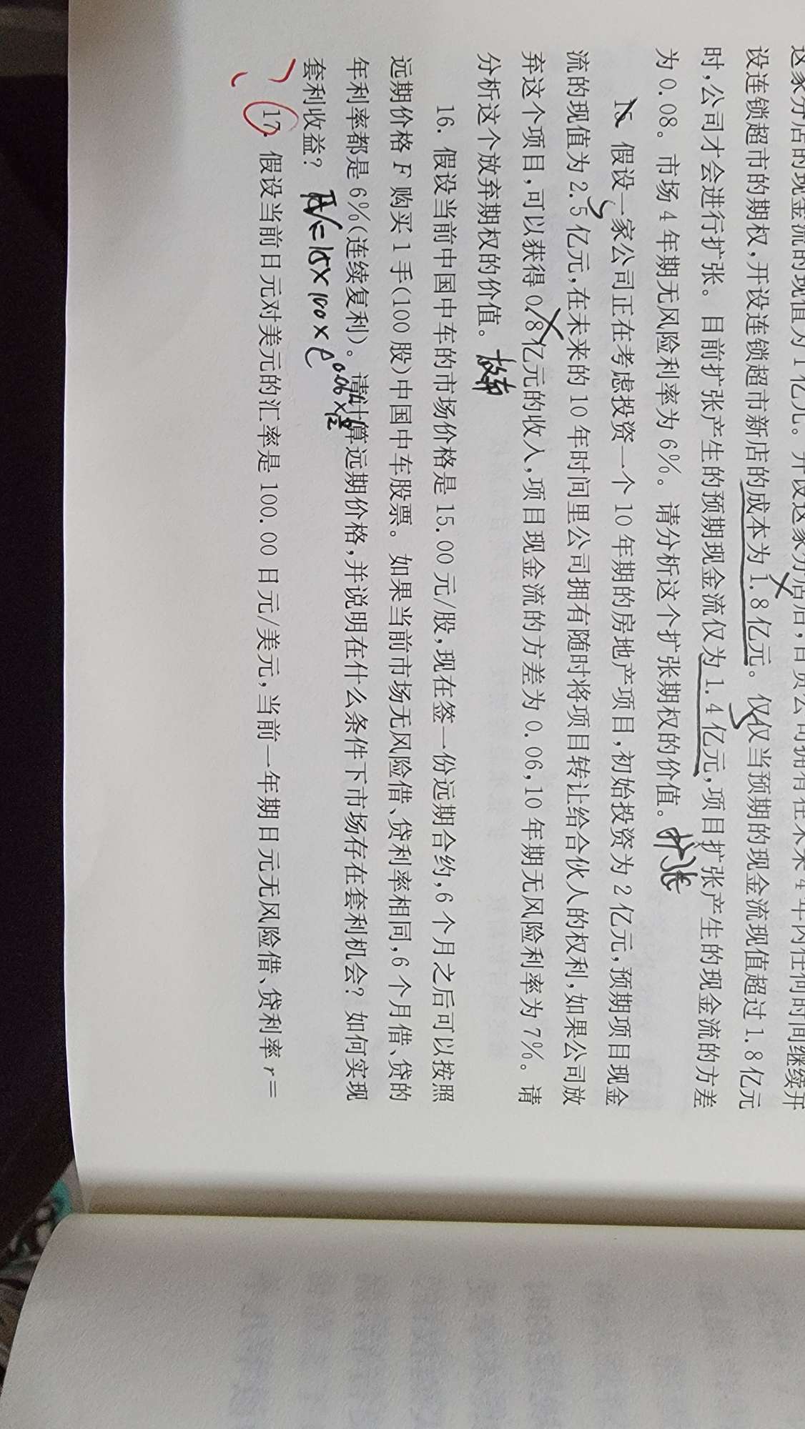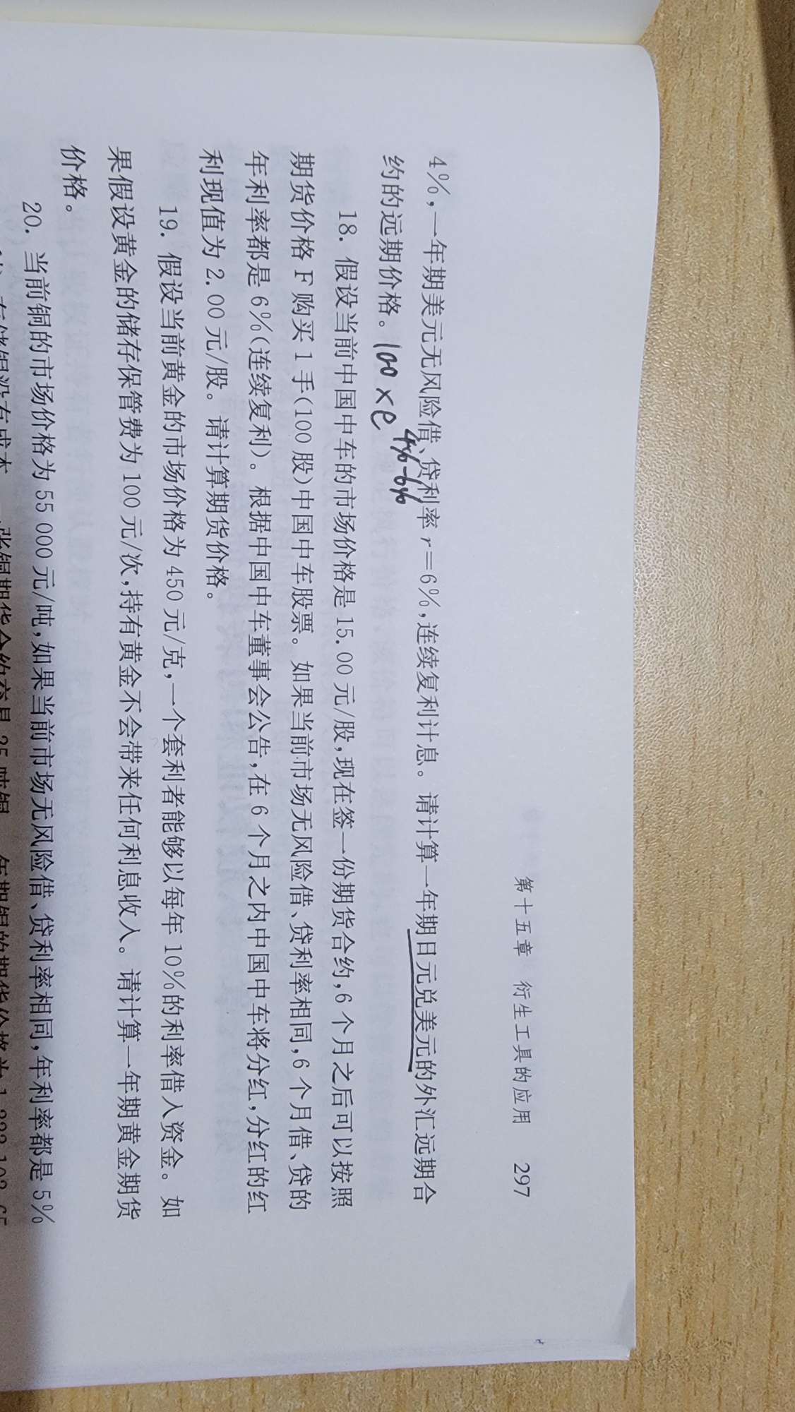 同学你的思路是对的,这里书上的答案是错的,应该4-6,因为美元的无风险利率高,所以美元贬值更快,因此计算日元兑美元应该是小于100的