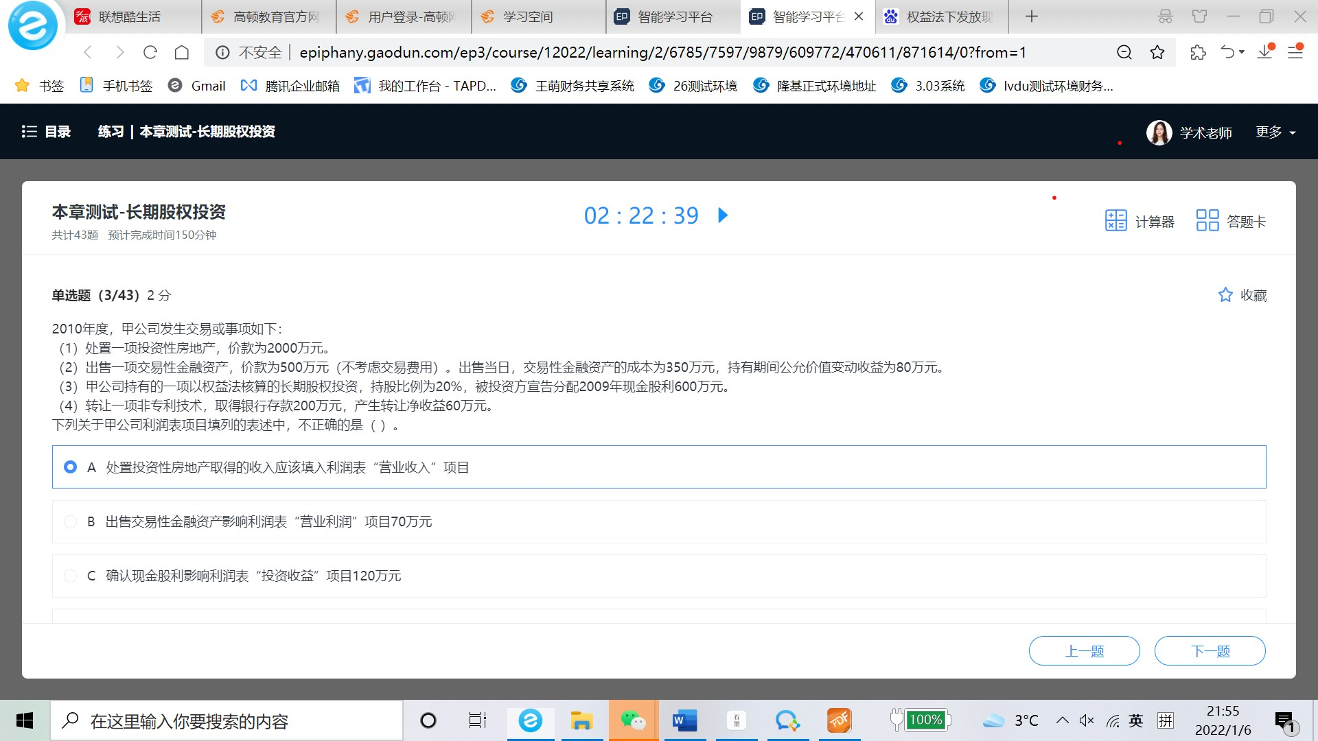 中级会计职称《经济法》2022难考点:长期股权投资和合营安排 今天学姐个大家安排的依旧核心考点——长期股权投资和合营安排。这一张大家要理解,调整被投资单位净利润时,应考虑投资时点被投资单位资产公允价值和账面价值的差额及内部交易对当期损益的影响。