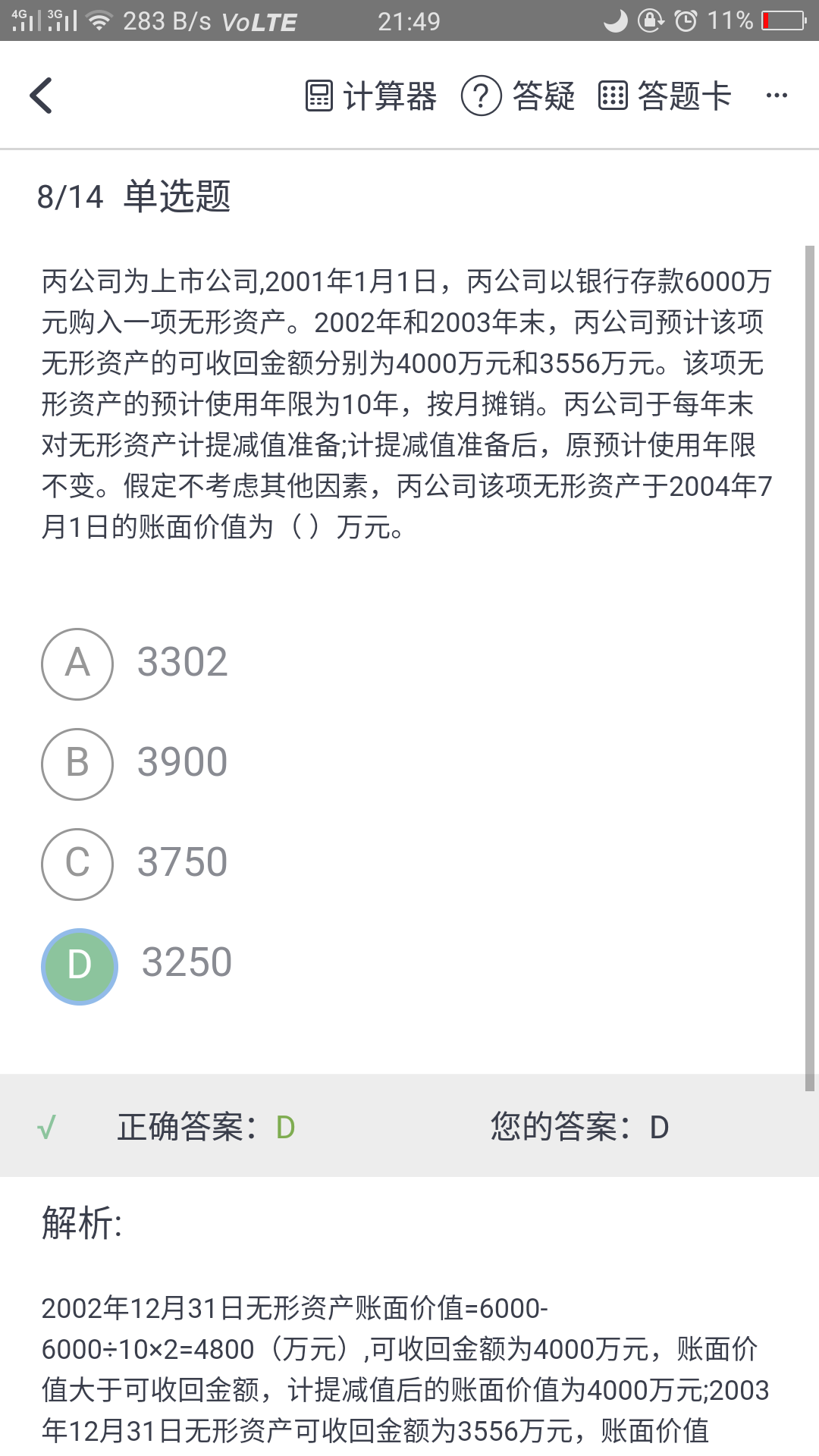 2004/7的折旧=账面价值3500/7/2(剩余使用年限7年,2004年1月至7月1日实际上问的是2004.1.1-2004.6.30,题目只是给你设置了一个小陷阱哦~)