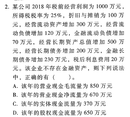 这个题目c选项,为什么资本支出不是500-200 100,而是500-200