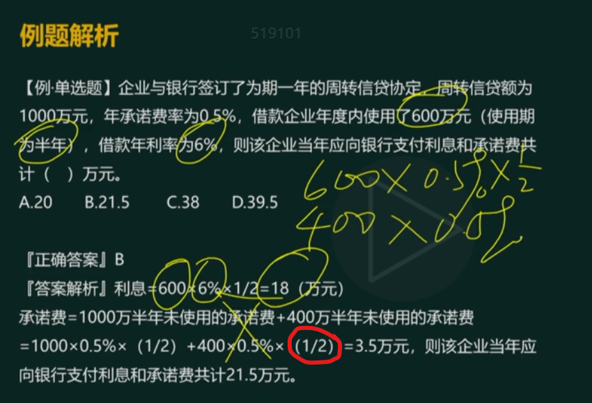 嗯,也可以这样思考,400万元一年没有动用,600万元使用半年,另外半年没有使用,所以400×0.5%+600×0.5%/2=3.5(万元),思路不一样,结果是一样的。