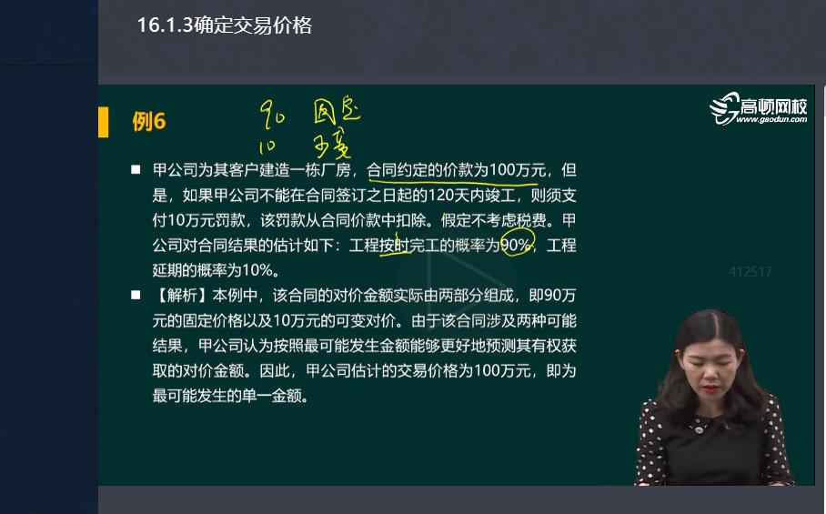 同学这个是同一样事件所发生的概率,我们不用做加权,比如我有90%的概率去北京,如果最后去了,那么就100%到北京,咱不能说到了路程的90%,他与其他例子的不同在于,比如销售收入算相关金额的话,因为涉及到不同的情形,不同的交易,所以才加权平均的