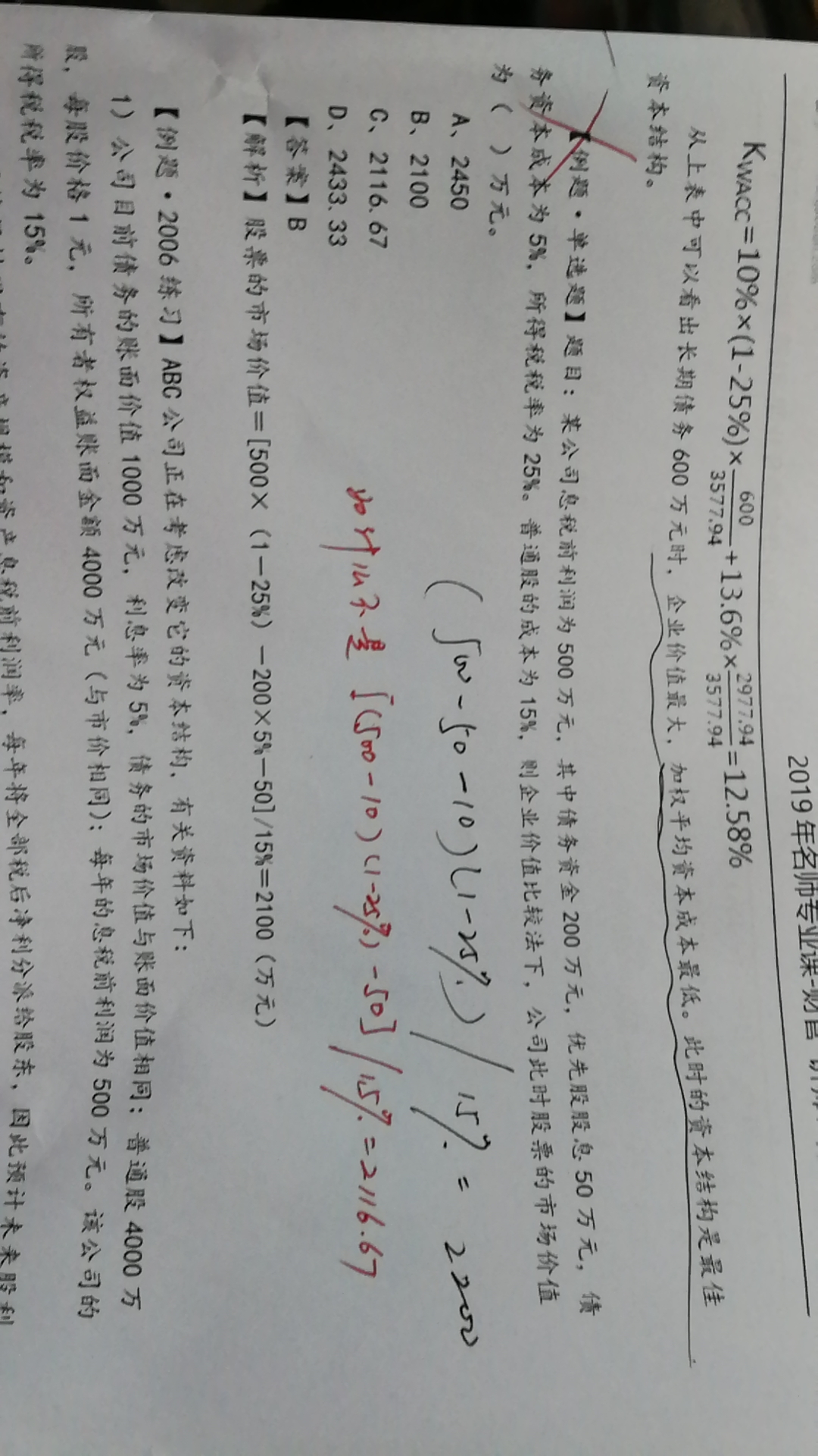 债务资本成本5%其实是考虑过25%之后的债务资本成本~