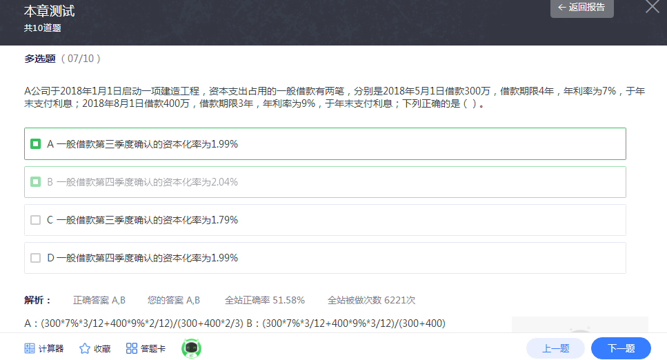 A第三季度的资本化率=第三季度的资本化利息/第三季度的本金,第三季度包括789月,由于第二笔借款是8月1日才借入,所以利息和本金都只能算8、9两个月的,即利息是2/12,本金是2/3.