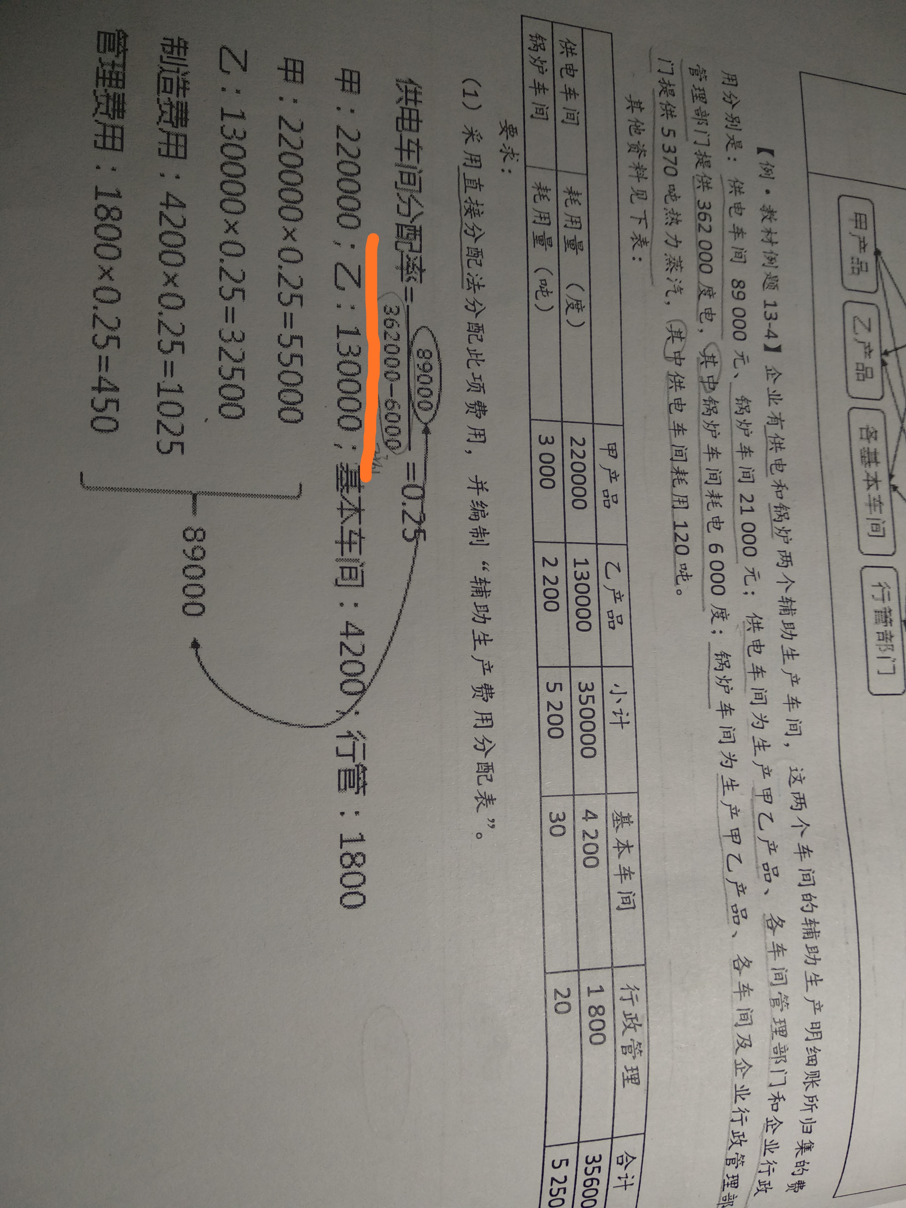 这道题按直接分配,化黄线部分的分母为什么还要减去6000,不应该直接就是提供总量6000吗