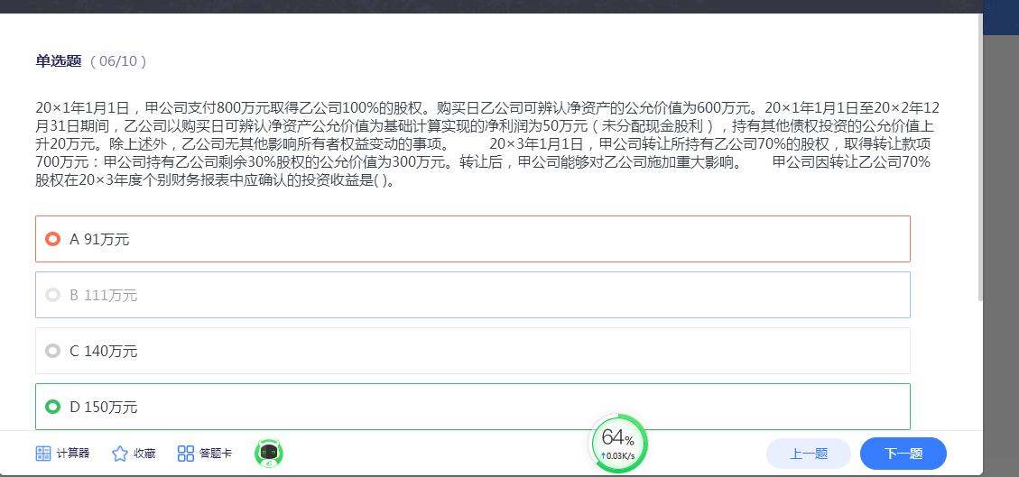 这个地方同学需要注意,这里是从成本法到权益法,在个别报表上也是视同全部出售,然后再买回来30%,所以是全部出售的价款(700+300),结转账面价值(800+50+20),然后再有结转其他综合收益20到投资收益,所以投资收益=(700+300)-(800+50+20)+20=150~