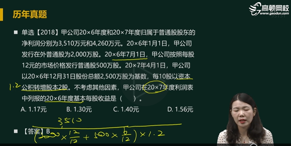 为什么这个计算不是:3510/(2500*1.2),题目不是高手我们2016年12月31日的股份总额为2500万份股了吗,直接乘以2500万份股的1.2倍不就好了吗?如果是错的,为什么这个2500万分股不能用