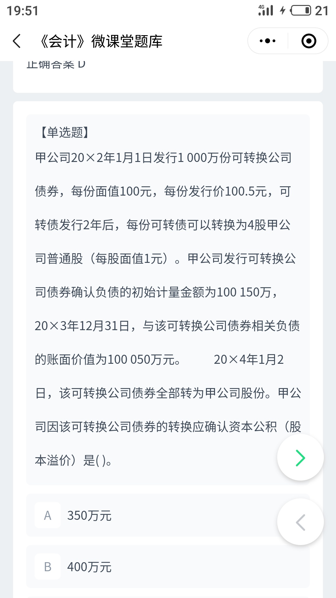 第三步,计算权益成分的公允价值③=100500-100150=350(万元)