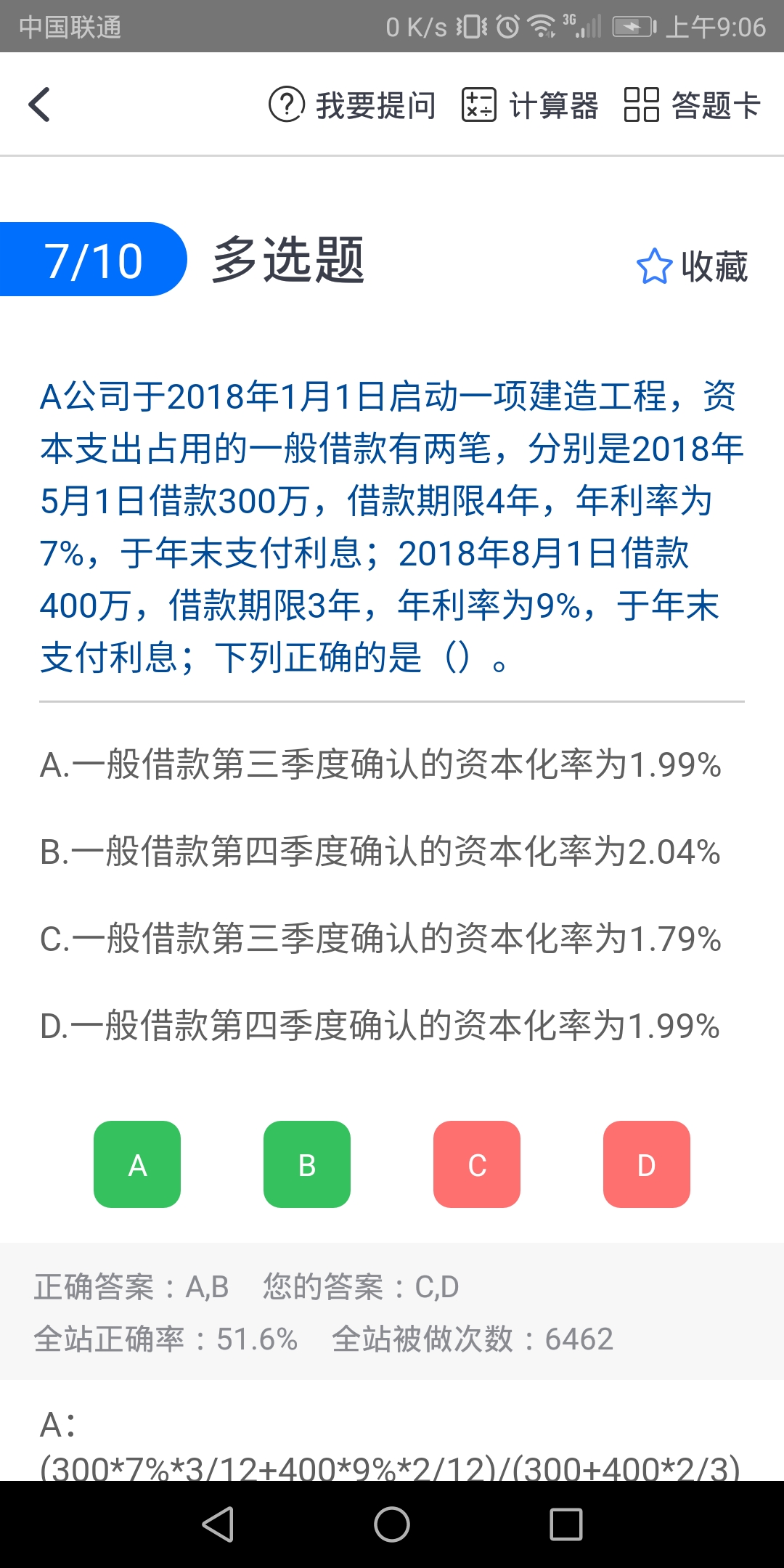 这里分子分母都是按3个月的季度去计算,以A选项为例分子7%由于是年度利息所以乘以3/12就换算成季度利息了。