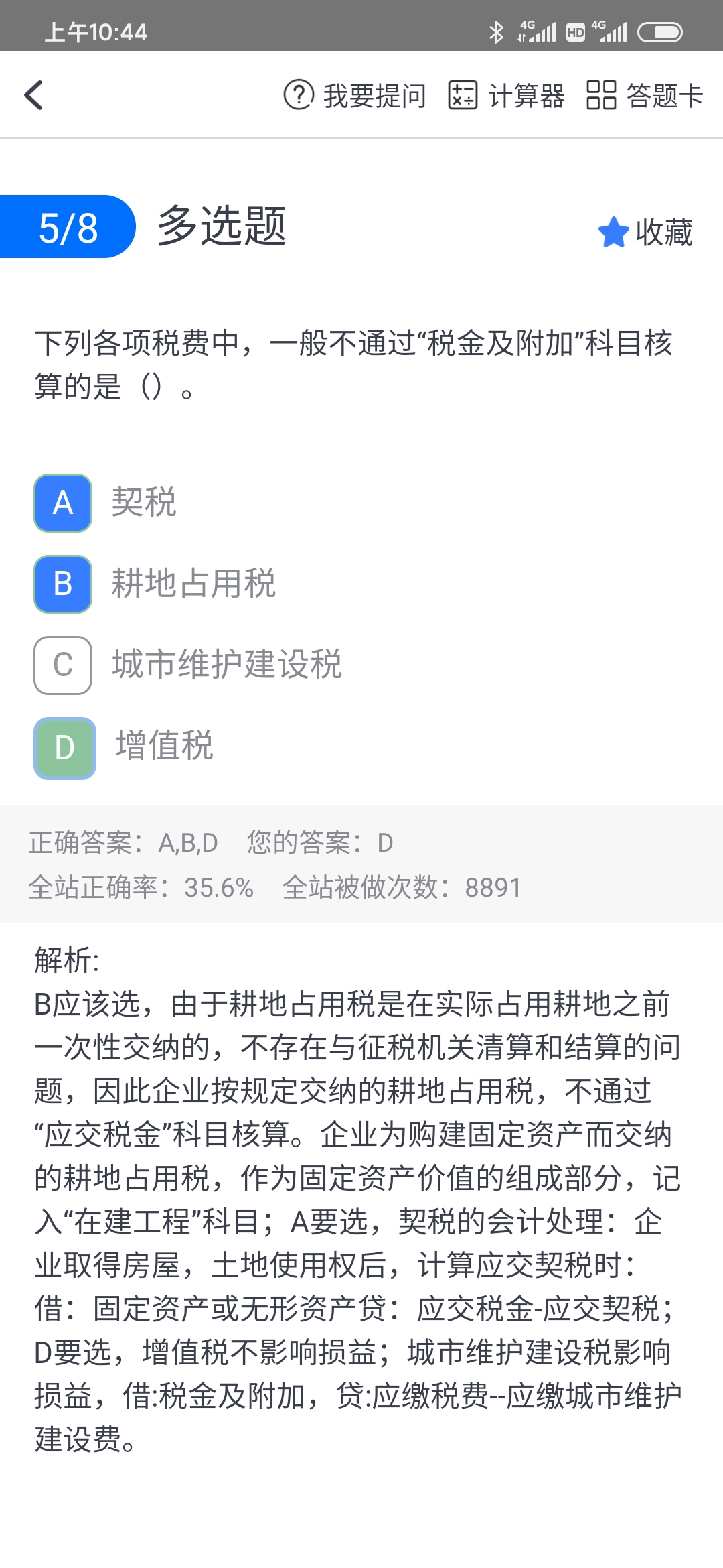 请问,应交税费中不包括的只有耕地占用税。而税金及附加不包括耕...
