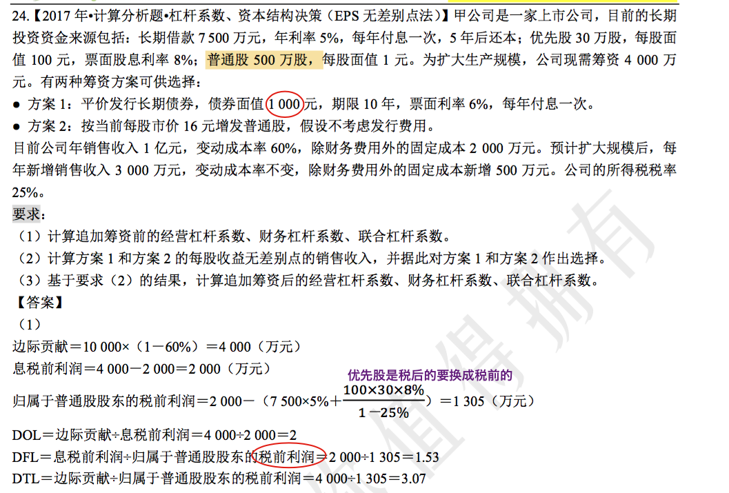 DTL是eps变化百分比/ebit变化百分比,这是定义式~ 而老师看你使用的是ebi(归普税前利润的变化~)